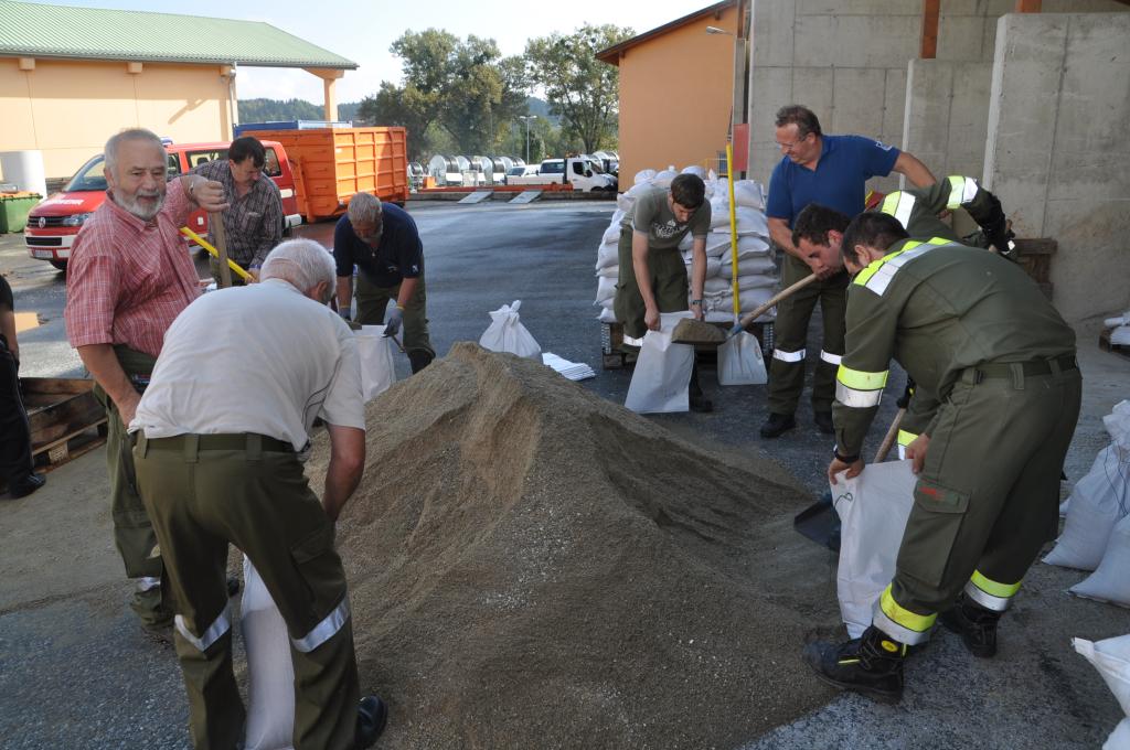 Die Unwetter der letzten Tage haben die Sandsackdepots der Feuerwehren derart dezimiert, dass der zuständige Abschnittsfeuerwehrkommandant des Abschnittes 2 des BFV Voitsberg, ABI Alfred Jauk, vom Bereichskommandanten eingeladen wurde, Sandsäcke vorbereitend aufzufüllen.