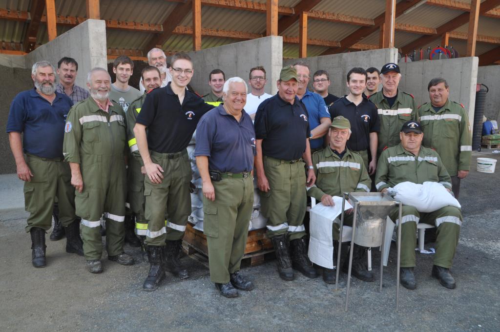 22 Kameraden und zwei Zivildiener trafen sich am 17.9.2014 beim städtischen Bauhof in Voitsberg und befüllten die rund 1000 Säcke mit Sand, welcher vom BFV Voitsberg zur Verfügung gestellt wurde.