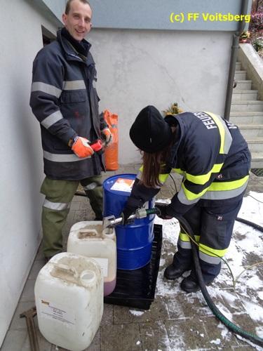 Einem aufmerksamen Edelschrotter fiel auf, das im Nachbarobjekt mit dem Öltank etwas nicht stimmt und alarmierte die FF Edelschrott. Nach der Lageerkundung durch ABI Harald Nestler wurde der zuständige Ölalarmstützpunkt Voitsberg zwecks Hilfestellung angefordert. In Zusammenarbeit der Feuerwehren Edelschrott und Voitsberg wurde das im Heizraum ausgelaufene Heizöl abgesaugt und in Fässer gepumpt. Da auch Heizöl in geringen Mengen in einen benachbarten Bach gelangte, wurden Ölsperren errichtet und das getränkte Bindemittel entsorgt. Sachverständige der BH Voitsberg waren ebenfalls an der Einsatzstelle.