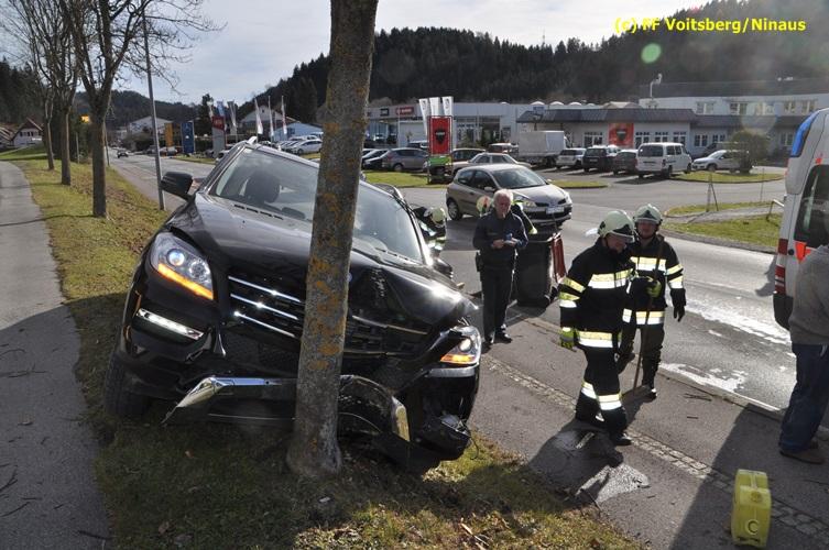 VOITSBERG, am 30.11.2015 Nach einem Auffahrunfall wurde das erste Fahrzeug ca. 30 Meter auf eine Böschung gegen einen Baum geschleudert und das zweite Fahrzeug kam auf der Gemeindestraße zu stehen. Beide Fahrzeuge wurden erheblich beschädigt und wurden von der Unfallstelle in eine nahe gelegene Werkstätte gefahren. Ausgeflossene Betriebsmittel wurden mit Bindemittel gebunden und entsorgt. Während der Aufräumungsarbeiten regelte die FF Voitsberg den Verkehr. Die anwesenden Beamten der Polizei Voitsberg führten die Unfallerhebung durch. Verletzt wurde niemand.