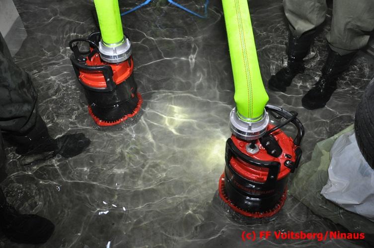 Nach einem Wasserrohrbruch in einem Mehrfamilienwohnhaus wurde der Keller im Ausmaß von ca. 400 m2 auf einer Höhe von bis zu 40 cm überschwemmt. Die FF Voitsberg pumpte unter Einsatz von drei Elektro-Tauchpumpen. eines Nasssaugers und unter Verwendung des am HLF 3 installierten Stromgenerators die ca. 150.000 Liter Wasser aus dem Keller. Großer Schaden entstand bei im Keller gelagerten Gegenständen. Durch den hohen Wasserstand war auch die Fernwärmeanlage betroffen. Die Reparatur des defekten Rohres wurde noch in der Nacht von einem Fachunternehmen durchgeführt. 7 KameradInnen konnten nach einem über dreistündigen Einsatz die Kellerräume im fast trockenen Zustand wieder verlassen und einrücken.