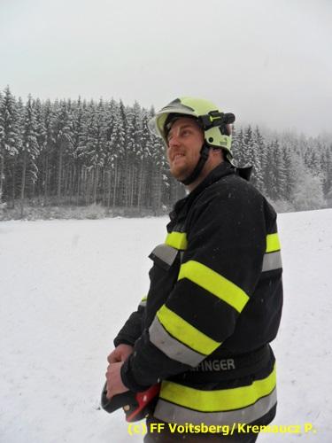 VOITSBERG, am 13.01.2017 Anforderung durch die FF Rosental - Bergung eines PKW mittels WLF-Kran aus einem Bachbett, nachdem dieser von der schneeglatten Fahrbahn abkam.