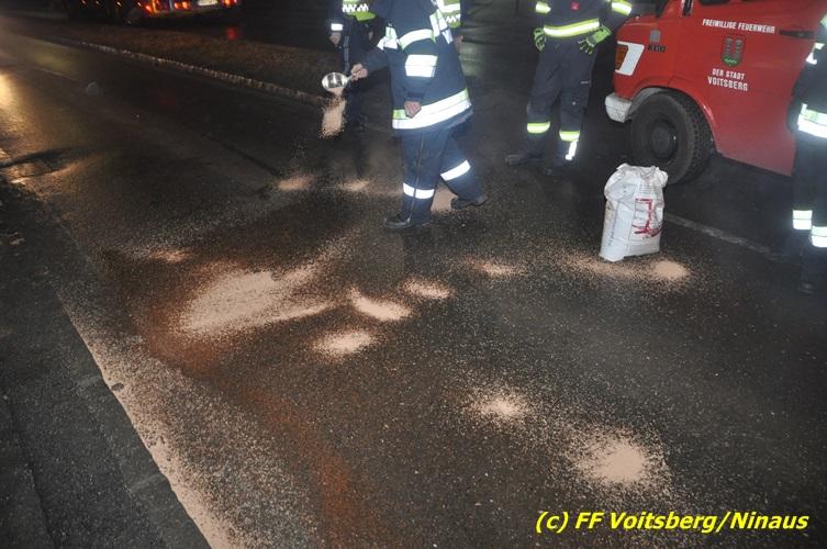 VOITSBERG, am 10.02.2017 Kurz vor dem Kreisverkehr "Blue Sky" in Fahrtrichtung Graz ereignete sich ein Auffahrunfall, wobei der hintere PKW schwer beschädigt wurde und von der Unfallstelle gebracht werden musste, ehe er von einem Autofahrerclub abgeschleppt wurde. Ausgeflossene Betriebsmittel wurden gebunden und entsorgt, sowie herumliegende Wrackteile von der Straße entfernt.