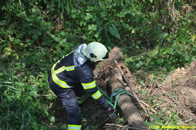 Aufmerksame Anrainer bemerkten in den Morgenstunden des 24. Juni 2017 umgestürzte Bäume bzw. Baumteile, welche einen Teil des Flusslaufes der Kainach in der Arnsteinstrasse in Voitsberg blockierten. Da Anrainer eine mögliche Verklausung aufgrund der vorhergesagten Niederschläge befürchteten, wurde die FF Voitsberg über Notruf alarmiert. Nach Erkundung des Einsatzleiters wurde zur unverzüglichen Bergung der Bäume bzw. Baumteile ein 5-fach-Flaschenzug, welcher händisch betätigt wurde, aufgebaut. Nach harter Arbeit bei schweißtreibenden Temperaturen konnte die Sicherheit des Flusslaufes von den KameradInnen wieder hergestellt werden.