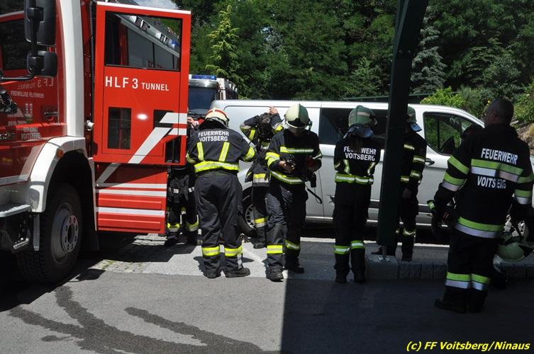 Gasaustritt (Özonit) aus Fass in Lager – während des Bergens des Fasses unter schwerem Atemschutz Evakuierung der Bediensteten in der Wäscherei - Transport zum Rüsthaus Voitsberg mit Sicherstellung – Entsorgung durch eine Fachfirma – Reserve der FF Krems am Einsatzort