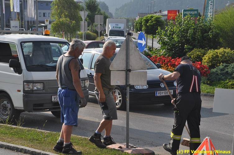 VOITSBERG, am 03.08.2018 Nach einem technischen Gebrechen bei einem LKW verlor dieser Hydrauliköl und verunreinigte die Fahrbahn im Bereich des Kreisverkehrs in der Grazer Vorstadt in Voitsberg auf einer Gesamtlänge von ca. 600 m. Die alarmierte FF Voitsberg band das ausgelaufene Öl, saugte das verunreinigte Bindemittel mit einer feuerwehreigenen Kehrmaschine auf und entsorgte dies fachgerecht. Während des Einsatzes wurde der Verkehr kurz angehalten, was im Frühverkehr auf der Umleitungsstrecke der gesperrten Umfahrung Voitsberg zu ausgedehnten Staus in Richtung Köflach führte. Eingesetzt waren 9 Einsatzkräfte der FF Voitsberg, 2 Kräfte des Bauhofes Voitsberg und 2 Kräfte der Straßenmeisterei Voitsberg. Text und Fotos: Walter Ninaus/FF Voitsberg