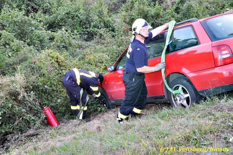 VOITSBERG, am 18.08.2018 Ein PKW kam aus ungeklärter Ursache von der B 70 ab und landete in einem Straßengraben. Die alarmierte FF Bärnbach forderte zwecks Bergung das WLF-K der FF Voitsberg an. Das geborgene Fahrzeug wurde an einem Abstellplatz abgestellt. Während der Bergungsarbeiten wurde die B 70 gesperrt und der Verkehr umgeleitet. Personen wurden keine verletzt.