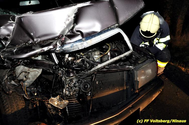 VOITSBERG, am 10.01.2019 Das WLF-Kran der FF Voitsberg wurde am Donnerstag, 10. Jänner 2019 um ca. 17 Uhr seitens der FF Krems angefordert, um einen schwer beschädigten PKW nach einem Zusammenstoß mit einem LKW in der Teigitschstrasse in Voitsberg von der Unfallstelle zu entfernen und zu einem gesicherten Abstellplatz zu bringen, da Schmierstoffe austraten. Text und Fotos: Walter Ninaus, FF Voitsberg