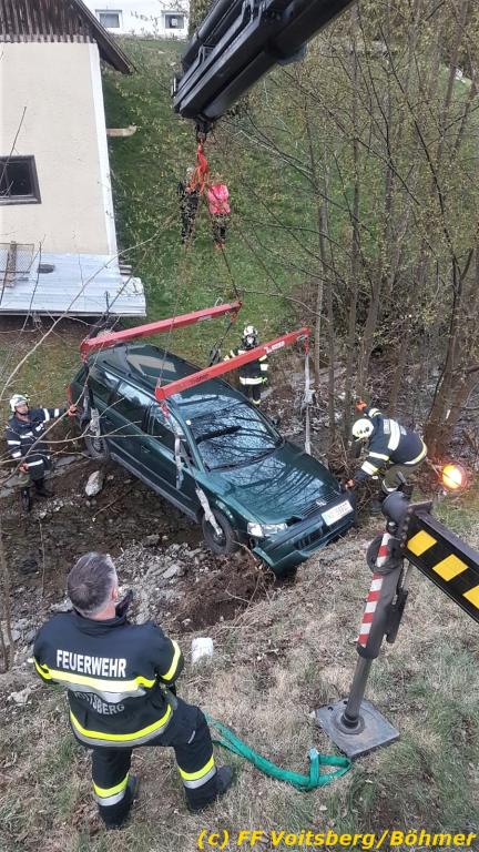 VOITSBERG, am 15.04.2021 Die FF Voitsberg wurde am Donnerstag, 15. April 2021 um 18:28 Uhr von der einsatzleitenden Feuerwehr Graden zu einer Fahrzeugbergung mit dem WLF-Kran alarmiert.