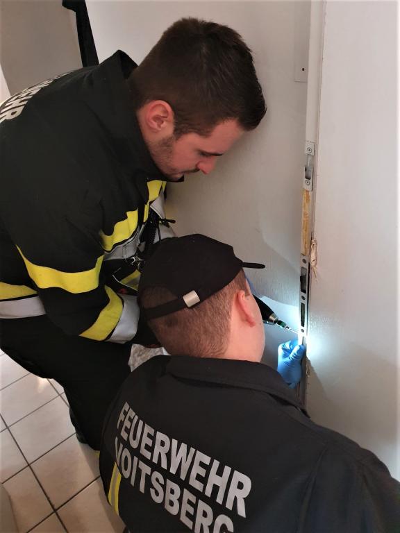 In der Zangtalerstraße stürzte eine Bewohnerin eines Mehrparteienhauses in ihrer Wohnung im 3. Obergeschoß und konnte selbständig nicht mehr aufstehen. Die Feuerwehrkameraden führten daraufhin im Auftrage der Polizei die Öffnung der Wohnungstüre durch und ermöglichten den Zugang der Rettungskräfte.