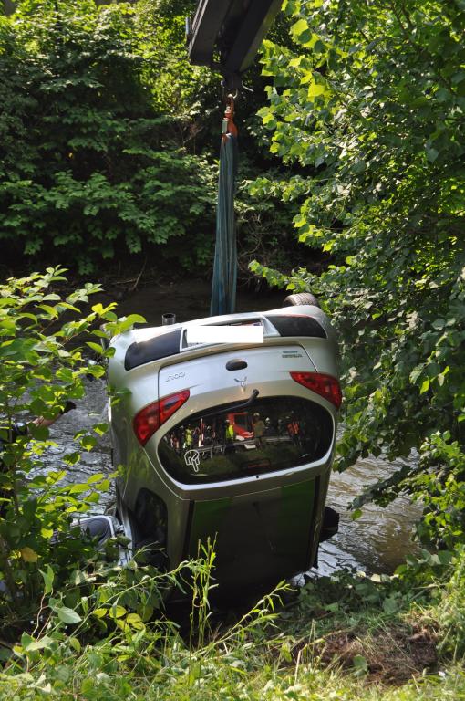 VOITSBERG, am 13.07.2013 Aus ungeklärter Ursache geriet ein PKW auf der B 70 in den Kremser Reihen ins Schleudern, geriet auf das Bankett, schlitterte entlang der Leitschiene und stürzte sich überschlagend in die Kainach, welche zum Glück Niederwasser führte, und landete dort am Dach liegend. Die unbestimmten Grades verletzte Fahrzeuglenkerin wurde in Zusammenarbeit der Feuerwehren Gaisfeld, Krems und Voitsberg sowie des Roten Kreuzes Voitsberg geborgen und von der Rettung ins LKH Voitsberg eingeliefert. Die darauffolgende Bergung und den drauffolgenden Abtransport führte die FF Voitsberg mit dem WLF durch. Die Verkehrsregelung und Vermessung wurde durch die Polizeiinspektion Voitsberg durchgeführt.