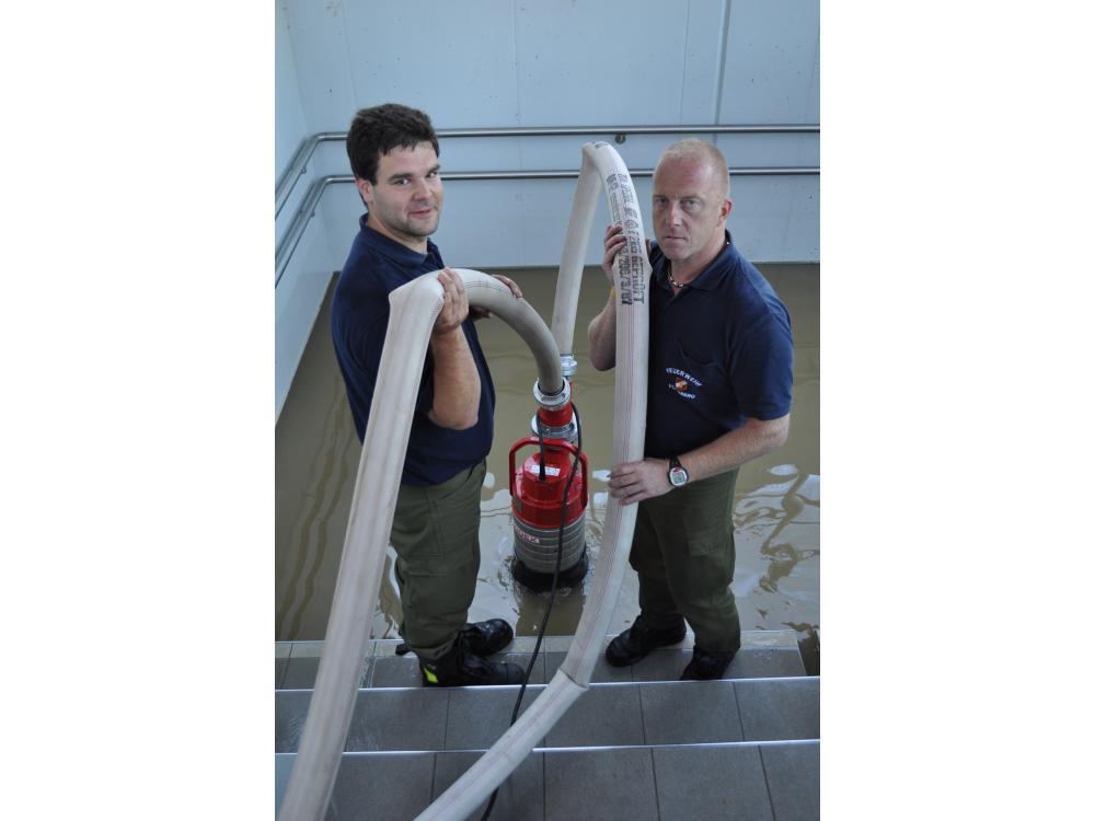VOITSBERG, am 10.07.2012 Der Verbindungsgang zu den Bahnsteigen am Voitsberger Bahnhof war ca. 3 m unter Wasser. Zur Unterstützung der Stromversorgung wurde über die LLZ das STROMA der FF Lieboch angefordert, da das STROMA der FF Voitsberg auf Grund von Servicearbeiten nicht zur Verfügung stand. Mit zwei Groß-Tauchpumpen (Leistung je Pumpe = ca. 3000 Liter/Minute) wurde der Zugang zu den Bahnsteigen in ca. 90 Minuten wieder ermöglicht.