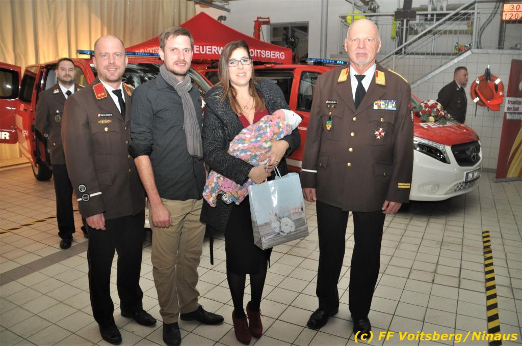 Das Feuerwehr-Ehepaar Daniela und Alexander Wallner wurden vor kurzem Eltern einer Tochter Annika. Aus diesem Anlass wurde ihnen seitens des Kommandos ein kleines Geschenk im Namen der FF Voitsberg übergeben. Herzliche Gratulation der Familie
