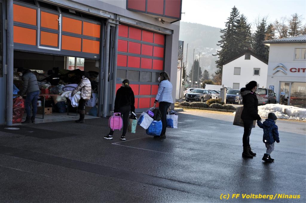 Die Aktion startete am Dienstag, 5. Jänner um 8 Uhr und die FF Voitsberg stand mit bis zu 25 KameradInnen bereit, die Waren von der Bevölkerung zu übernehmen, zu sortieren und zu palettieren. Es war aber so viel an Spendenfreudigkeit festzustellen, dass schon am Dienstag am Nachmittag die Spendenaktion, welche bis Mittwochmittag geplant war, aus Kapazitätsgründen abgebrochen werden musste. Der ursprünglich eingeplante Sattelschlepper war bereits voll beladen, sodass ein zweiter bestellt wurde.
