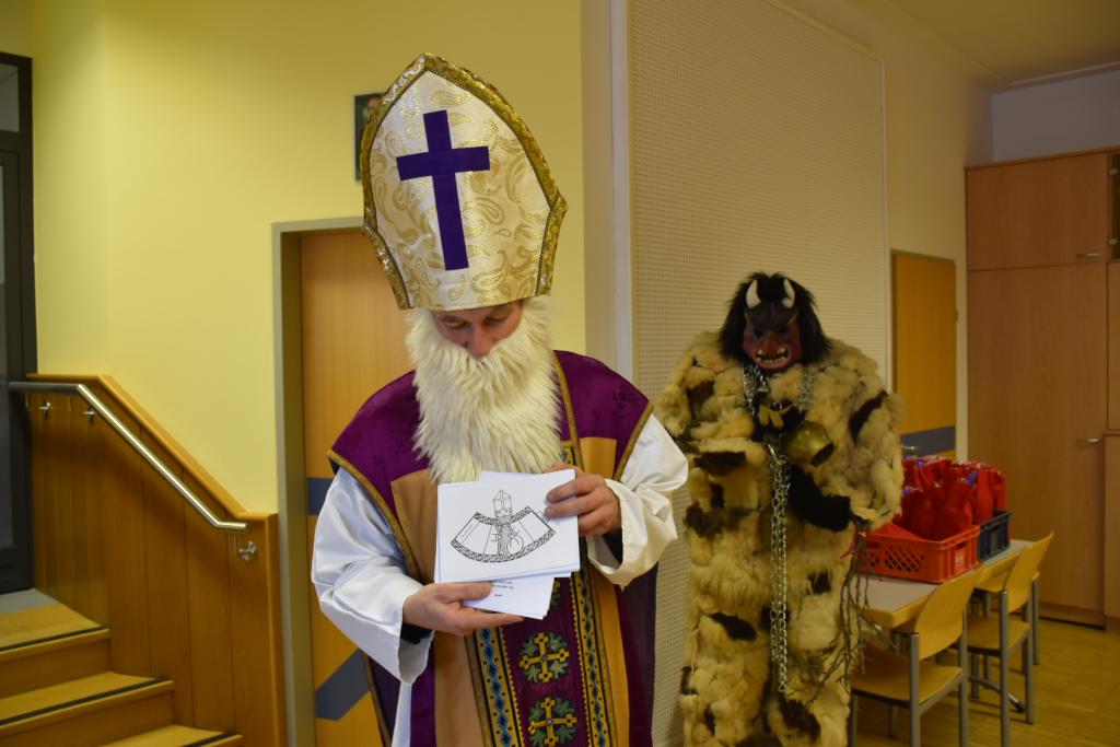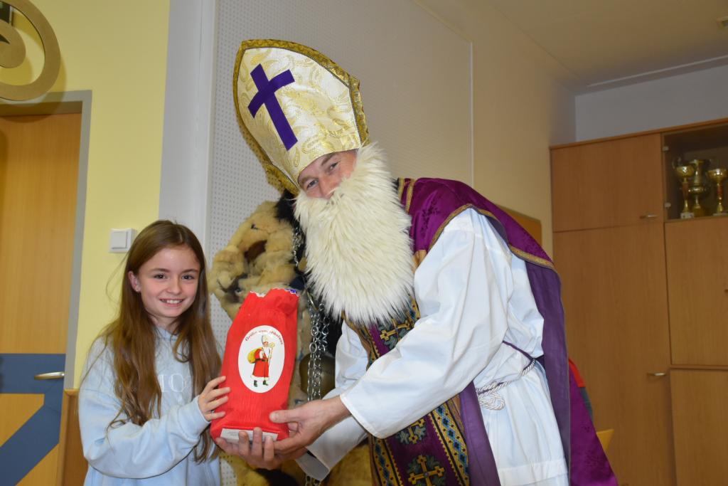 Die Freude war groß und so brachte unser Gast mit seiner Bischofsmütze und seinem Stab die Kinderaugen zum Strahlen. Nach einer kurzen Ansprache verteilte der Nikolaus mitgebrachte Geschenke an die Kinder. Im Anschluss wurde gemeinsam noch ein bekanntes Nikolauslied angestimmt, ehe es zum gemütlichen Teil und zur Spielecke überging.