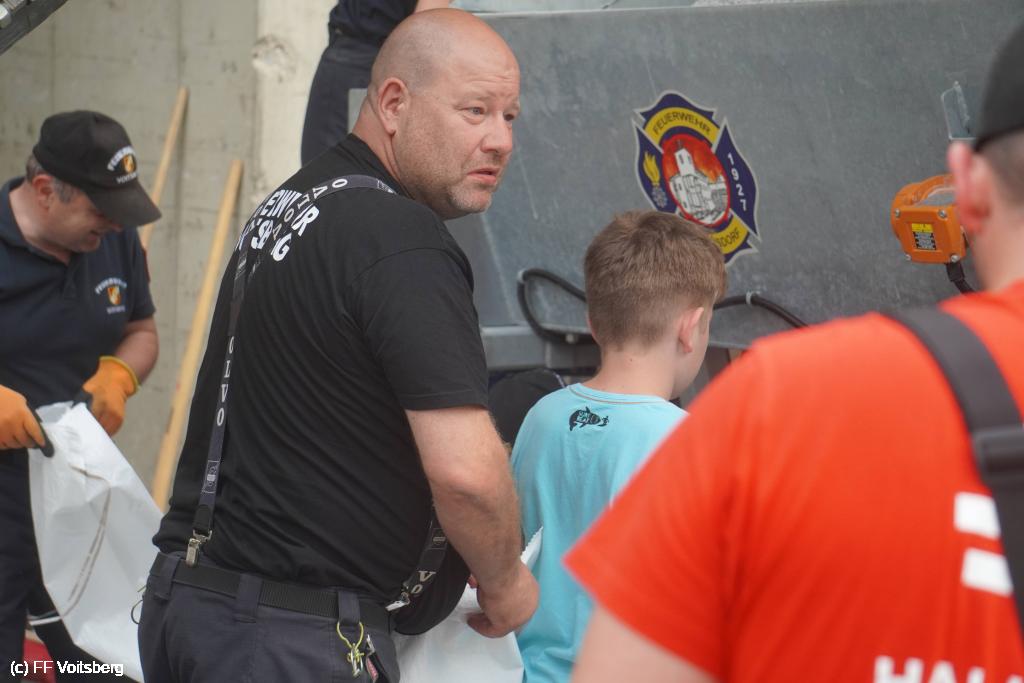 43 Personen aus den Feuerwehren Voitsberg und Krems, Mitarbeiter des städtischen Bauhofes Voitsberg sowie KameradInnen der FF Hallersdorf, welche für den BFV Voitsberg der Katastrophenstützpunkt ist, füllten am 17. Juni 2024 am Bauhof in Voitsberg tausende Sandsäcke mit der Sandsackfüllanlage für die Voitsberger Bevölkerung ab, um den Bewohnern die Möglichkeit zu geben, sich selbst vor Hochwasser zu schützen. Jeder kann bis zu 10 Sandsäcke gratis erwerben, bei sich lagern und im Unwetterfall Erstmaßnahmen von selbst setzen.
