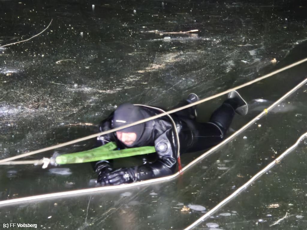 Ein besonderer Dank gilt LM Alexander Kröpfl, welcher sich bei einer Außentemperatur von knapp unter 0 Grad Celsius mit einem Tauchanzug ins eiskalte Wasser begab.