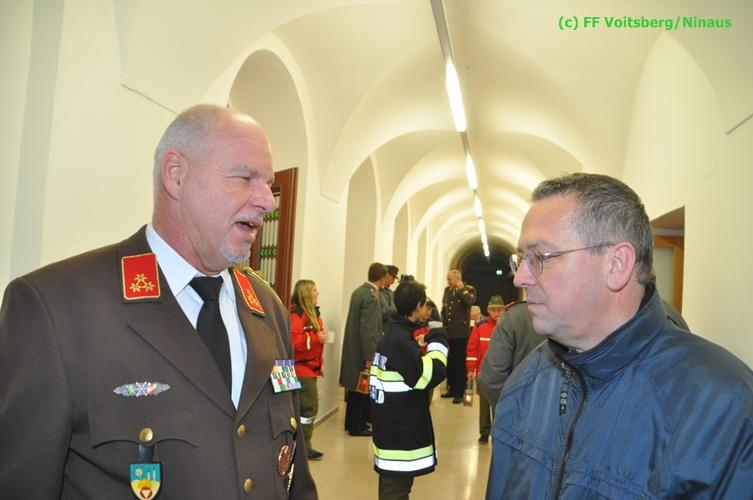 VOITSBERG, am 23.12.2015 Das Friedenslicht aus Bethlehem wurde heuer für den Bereich Voitsberg in der Josefskirche in Voitsberg von Dechant und Stadtpfarrer Mag. Gerald Krempl gesegnet und mit Unterstützung von LFR Engelbert Huber an die Feuerwehrjugend ausgegeben. Über 200 Teilnehmer an diesem besinnlichen Zusammentreffen zeigen die gute Jugendarbeit im Bereich auf und lassen uns beruhigt in die Zukunft sehen, was den Nachwuchs in den Feuerwehren betrifft. Organisiert wurde diese Veranstaltung von der FF Voitsberg mit den Jugendbeauftragten Rene Sorger und Peter Kremaucz in Zusammenarbeit mit dem Bereichsbeauftragten Harald Sorger. Nach Grußworten des Voitsberger Bürgermeisters Ernst Meixner, LFR Engelbert Huber und OBI Harald Sorger im Klosterhof stärkten sich die Teilnehmer in den Pfarrräumlichkeiten mit heißen Getränken und Mehlspeise und fuhren anschließend in ihre Standorte mit dem Friedenslicht zurück, um es an die Bevölkerung weiter zu geben.