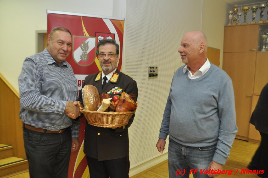 VOITSBERG, am 19.03.2016 Das bereits zur Tradition gewordene Osterschinkenschnapsen für die KameradInnen der Stadtfeuerwehr Voitsberg fand im Schulungsraum des Rüsthauses Voitsberg am 19.3.2016 statt. Die Begrüßung und Eröffnung wurde vom Verantwortlichen für die Kameradschaftspflege BI Karlheinz Buchegger vorgenommen. 13 Kameraden und 2 Kameradinnen stellten bei diesem kameradschaftlichen Wettspiel ihr Können unter Beweis. Für den einen lief es besser, für den anderen wieder nicht so gut, aber eines war wichtig, Kameradschaft und Spaß müssen an erster Stelle stehen. So war es auch, aber die Kameraden staunten nicht schlecht, als am Schluss eine Kameradin ganz oben stand. Waltraud Veigl, Mitorganisatorin und "Mädchen für alles" trotzte den Männern und ging als überraschende Siegerin hervor. Im Finale bezwang sie den Zweitplatzierten Rudolf Deutschmann und den Drittplatzierten Reinhard Graller am Siegertisch. Die weiteren Platzierungen: 4. Günter Höller 5. Rudolf Gargitter 6. Josef Reinisch 7. Gerhard Veigl 8. Alfons Tappauf 9. Klaus Gehr 10. Rene Sorger 11. Stefan Veigl 12. Karlheinz Buchegger 13. Walter Ninaus 14. Eva-Maria Flanschger 15. Richard Waidacher. Die Siegerehrung wurde von Bereichsfeuerwehrkommandanten LFR Engelbert Huber und dem Wehrkommandanten HBI Ing. Klaus Gehr vorgenommen. Dank für die Vorbereitung und Durchführung gilt neben der bereits erwähnten Waltraud Veigl dem Spielleiter Rudolf Gargitter auszusprechen. Besonderer Dank auch dem Fleischwarenfachgeschäft Reiner am Voitsberger Hauptplatz für die Warenspende. Abschließend wurden alle zu einer kleine Jause seitens der FF Voitsberg eingeladen.