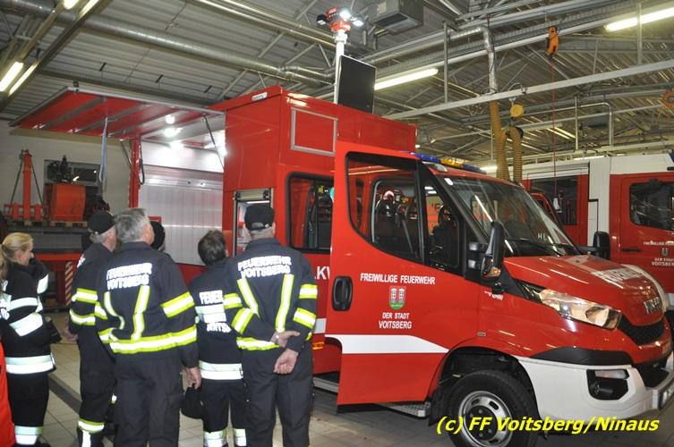 VOITSBERG, am 05.12.2016 Nach der Neuanschaffung eines LKWA für den in die Jahre gekommenen VF wurde der Mannschaft das neue Fahrzeug vorgestellt. OBI Michael Münzer und LM d. F. Harald Kremaucz zeigten den KameradInnen das neue Containersystem, mit welchem bei den einzelnen Einsätzen rasch und gezielt in Tätigkeit getreten werden kann. Weiter wurde Ausstattung und die technischen Einrichtigungen vorgeführt.