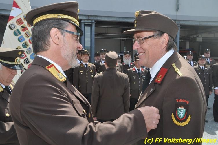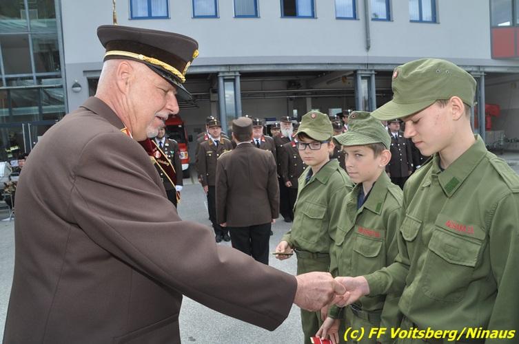 Traditionell begann der Festtag der Feuerwehren für die KameradInnen der Stadtfeuerwehr Voitsberg, dem Florianitag, mit einem Gottesdienst in der St. Josefskirche, zelebriert von Stadtpfarrer Dechant Mag. Gerald Krempl und musikalisch umrahmt von einem Bläserensemble der Bergkapelle Hödlgrube-Zangtal. Beim Rüsthaus erfolgte anschließend der auch schon traditionelle Frühjahrsrapport mit der Meldung an Bürgermeister Ernst Meixner. Wehrkommandant ABI Ing. Klaus Gehr konnte eingangs Stadtpfarrer Dechant Mag. Gerald Krempl, Bürgermeister EHBI Ernst Meixner, die Vizebürgermeister Kurt Christof und Walter Gaich, Stadtrat Markus Leinfellner, die Gemeinderäte Peter Hemmer, Manfred Prettenthaler und Alois Scherr, Chefinspektor Robert Zapfl von der PI Voitsberg, Bezirksstellenleiter des Zivilschutzverbandes Anton Schober, Franz Patz von den Amateurfunkern, Bereichsfeuerwehrkommandant Landesfeuerwehrrat Engelbert Huber, Abschnittsfeuerwehrkommandant ABI Alfred Jauk und die Ehrendienstgrade EABI Rudolf Gargitter und ELM Richard Waidacher begrüßen. In seinen Grußworten überbrachte Bürgermeister Ernst Meixner die Grüße des Gemeinderates und dankte den Mitgliedern der FF Voitsberg für ihren Einsatz zum Wohle der Voitsberger Bevölkerung und gratulierte zur perfekten Organisation des „Tages der Einsatzorganisationen“, welcher gestern beim Rüsthausgelände stattfand. Anschließend wurden der Probefeuerwehrmann David Acham und die Probefeuerwehrfrau Sarah Wintscher nach Verlesen der Gelobungsformel durch den Dechant per Handschlag mit dem Wehrkommandanten angelobt. Die Jungfeuerwehrmänner Jonathan Rapp, Marvin Wintscher, Diemo Acham und Philipp Schmelzer wurden mit Jugendstreifen befördert. David Acham, Sarah Wintscher und Katharina Gogg wurden zu Feuerwehrmänner/frauen befördert. Oberfeuerwehrmann Stefan Veigl wurde zum Hauptfeuerwehrmann, LM d. F. Christian Buchegger zum Löschmeister und Gruppenkommandanten, OLM d. F. Rene Sorger zum Oberlöschmeister und Gruppenkommandanten und Löschmeister Alexander Kröpfl zum Brandmeister und Zugskommandant befördert. Mit der Verdienstmedaille in Bronze für 10jährige Mitgliedschaft in der FF Voitsberg wurde Martin Rapp und der Verdienstmedaille in Silber für 20jährige Mitgliedschaft Ernst Meixner und Waltraud Veigl geehrt. Seitens des BFV Voitsberg wurden mit dem Verdienstkreuz in Bronze Günter Buchegger und mit dem Verdienstkreuz in Silber Karlheinz Buchegger, Ernst Meixner, Rudolf Deutschmann, Friedrich Raudner, Josef Reinisch, Alfons Tappauf und Richard Waidacher von LFR Engelbert Huber ausgezeichnet. Vom Land Steiermark wurde für 25jährige Mitgliedschaft Alfons Tappauf und für 50jährige Mitgliedschaft Rudolf Gargitter geehrt. Das Verdienstkreuz 3. Stufe des LFV Steiermark erhielten Christian Buchegger und Rene Sorger. Ein Höhepunkt dieses Florianitages war die Übergabe und Segnung des Ölschadensfahrzeuges, welches der FF Voitsberg als Bereichsstützpunkt seitens des LFV Steiermark durch LFR Engelbert Huber übergeben und von Dechant Mag. Krempl gesegnet wurde. LFR Huber betonte in seiner Ansprache die Wichtigkeit der FF Voitsberg für den Bereich Voitsberg als Zentrum der Aktivitäten und gratulierte zur gelungenen Abwicklung der gestrigen Großveranstaltung. Alice und Alfons Tappauf, welche fast 20 Jahre im Rüsthaus wohnten, haben außerhalb von Voitsberg ein neues Heim gekauft und werden der FF Voitsberg nicht mehr ihren Dienst anbieten können. Wehrkommandant ABI Gehr bedauerte dies und dankte beiden für ihre stete Einsatzbereitschaft, übergab ihnen ein Abschiedsgeschenk und wünschte ihnen namens aller Wehrmitglieder viel Glück und Gesundheit in der Zukunft. Moderiert in bewährter und gekonnter Weise wurde diese Veranstaltung von BI Karlheinz Buchegger. Mit dem Abspielen der Landeshymne durch eine Abordnung der Bergkapelle Hödlgrube-Zangtal wurde dieser würdevolle Florianitag beim Rüsthaus abgeschlossen. Ein gemeinsames Mittagessen beim Gasthaus Muralter rundete diesen für die Feuerwehren stolzen Feiertag ab.