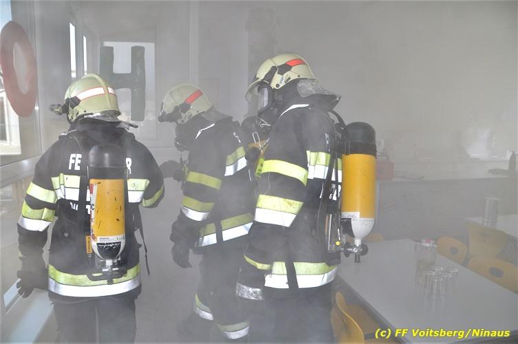 VOITSBERG, am 24.10.2018 Im Kinderhort Voitsberg in der Helmut-Glaser-Strasse fand am Mittwoch, 24. Oktober 2018 eine Räumungsübung statt. Übungsannahme war ein Brand in der Küche im ersten Stock. Nach dem internen Alarm begaben sich die Schüler und die Aufsichtspersonen auf einen im Alarmfall vorgesehenen Sammelplatz. Die verständigte FF Voitsberg führte nach der Erkundung einen Innenangriff unter schwerem Atemschutz mit einem Trupp durch und löschte das Feuer. Der vorhandene Rauchabzug im gesamten Objekt konnte sodann mit Unterstützung eines Drucklüfters die Räumlichkeiten rauchfrei machen, sodass die Schüler ihre Klassenzimmer wieder beziehen konnten. Davor wurde den Kindern von ABI Jauk das richtige Verhalten bei einem Brandereignis gezeigt, wobei die Jugendlichen aktiv mitarbeiten konnten. Bei einer abschließenden Nachbetrachtung der Übung mit BR Ing. Klaus Gehr, ABI Alfred Jauk, Einsatzleiter Harald Kremaucz und Verantwortlichen des Horts wurden der Ablauf als auch Verbesserungen erläutert. Text und Fotos: Walter Ninaus, FF Voitsberg