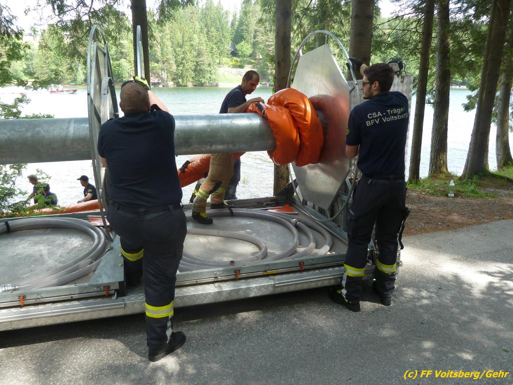 VOITSBERG, am 08.06.2019 Am Samstag, 8. Juni 2019 fand am Packer Stausee eine Schulung zur richtigen Handhabung von Ölsperren auf ruhigem Gewässer statt. Organisiert von den Beauftragten des BFV Voitsberg BIdF Philipp Krenn (FF Ligist) und BIdF Harald Kremaucz (FF Voitsberg) wurden in Zusammenarbeit mit dem Stützpunkt für Gefahrgut (FF Voitsberg) und Wasserdienst (FF Stallhofen) sowie der BtF Sappi Gratkorn die Techniken geschult. Weiters unterstützt wurde diese Schulung seitens der BF Graz durch die Bereitstellung von Mannschaft und Gerätschaften. Als Beobachter fungierten seitens des BFV Voitsberg BerFwKdt OBR Christian Leitgeb, BerFwKdtStv. BR Ing. Klaus Gehr sowie die Abschnittsfeuerwehrkommandanten ABI Alfred Jauk, ABI Harald Nestler und ABI Markus Murgg. Text: Walter Ninaus, FF Voitsberg Fotos: Klaus Gehr, FF Voitsberg