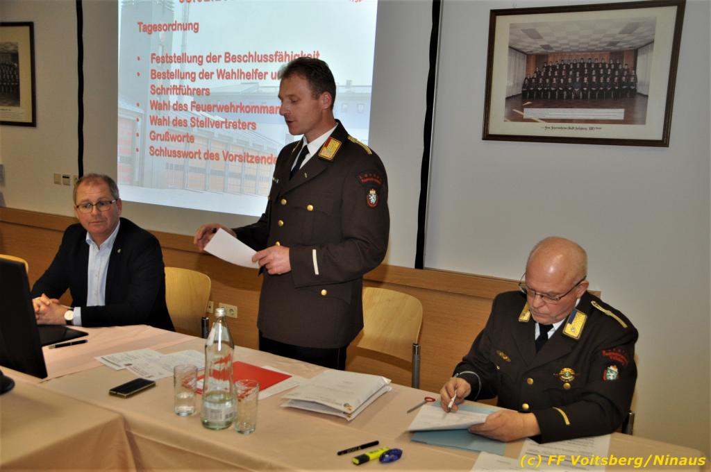 Im Anschluss an die Wehrversammlung der Stadtfeuerwehr Voitsberg fand unter Vorsitz von OBR Christian Leitgeb eine Wahlversammlung statt. Da die Kameraden Klaus Gehr und Bernd Unger ihre Funktionen als Kommandant und Kommandant-Stellvertreter zur Verfügung stellten, musste eine Neuwahl für diese Funktionen durchgeführt werden. Zeitgerechte Anträge für Bernd Unger zum Kommandanten und Harald Kremaucz zu seinem Stellvertreter wurden beim BFV eingebracht.