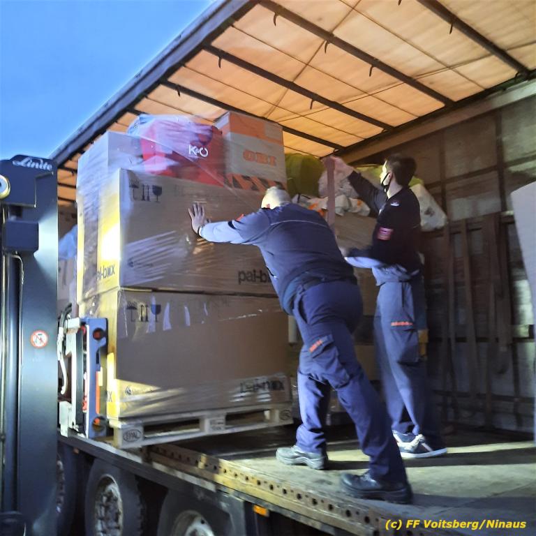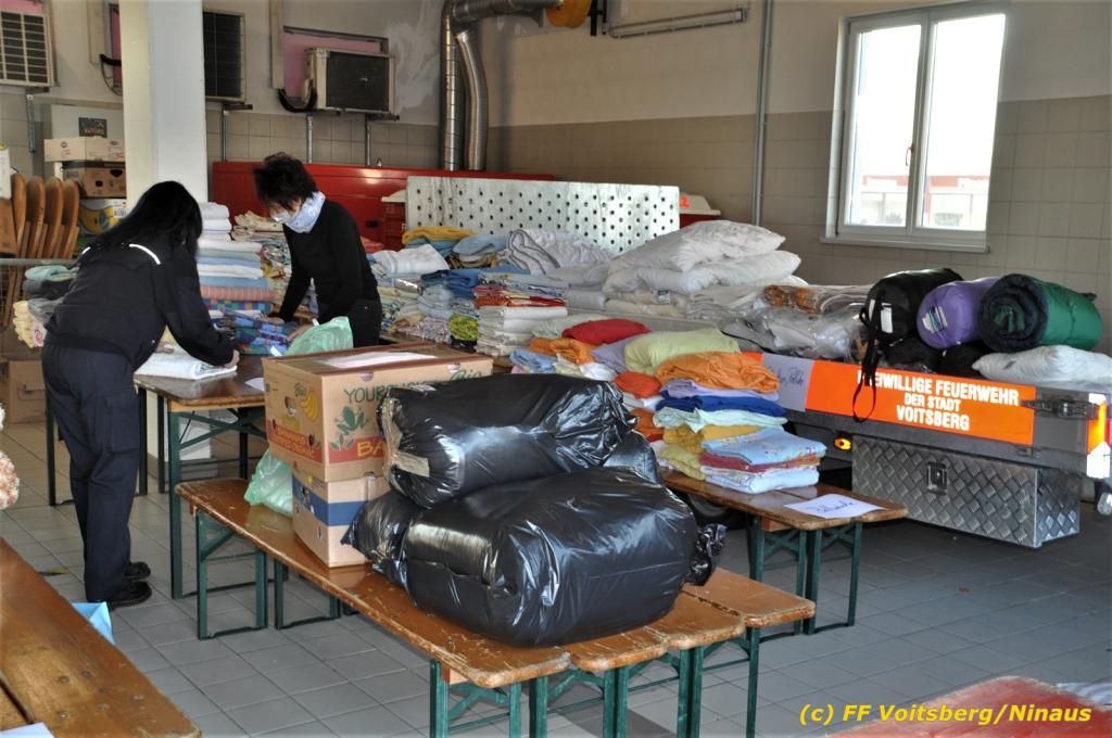 Die Aktion startete am Dienstag, 5. Jänner um 8 Uhr und die FF Voitsberg stand mit bis zu 25 KameradInnen bereit, die Waren von der Bevölkerung zu übernehmen, zu sortieren und zu palettieren. Es war aber so viel an Spendenfreudigkeit festzustellen, dass schon am Dienstag am Nachmittag die Spendenaktion, welche bis Mittwochmittag geplant war, aus Kapazitätsgründen abgebrochen werden musste. Der ursprünglich eingeplante Sattelschlepper war bereits voll beladen, sodass ein zweiter bestellt wurde.