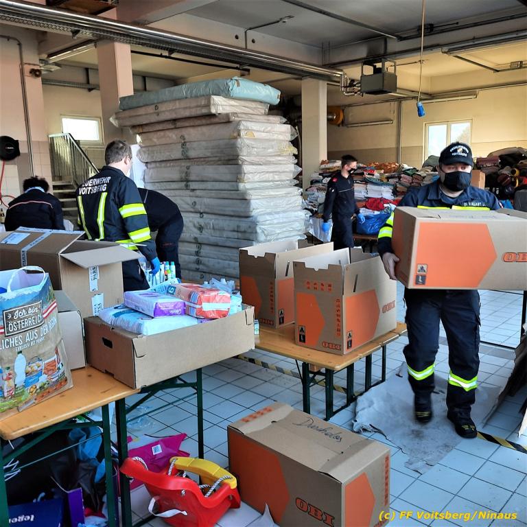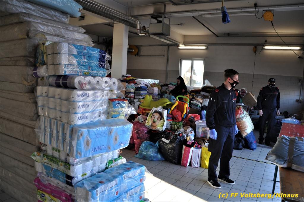 Zahlreiche Feuerwehren beteiligten sich an dieser Aktion, sammelten und brachten alles nach Voitsberg. Groß war der personelle Aufwand bei der Sortierung der Waren beim Feuerwehrhaus, was von den Voitsberger Feuerwehrmitgliedern gemeistert werden konnte, wofür herzlich DANKE zu sagen gilt.