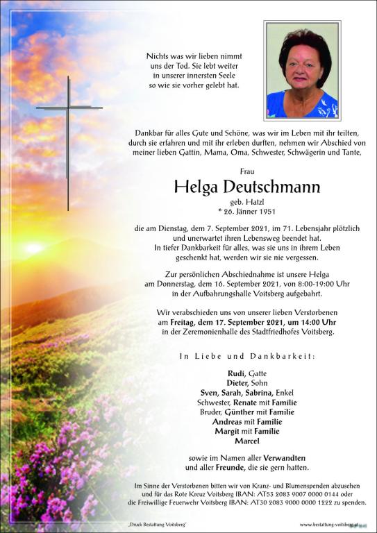 VOITSBERG, am 17.09.2021 Eine Abordnung der FF Voitsberg nahm am Begräbnis der Gattin unseres Wehrmitgliedes Rudolf Deutschmann, Frau Helga Deutschmann, teil.