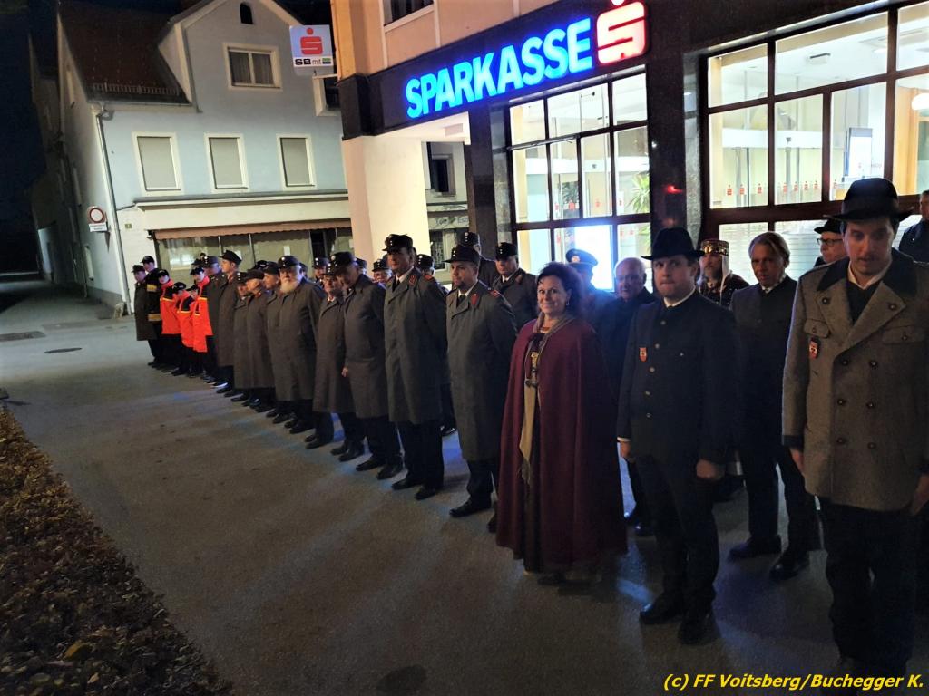 Nach einer Gedenkmesse, zelebriert vom Seelsorger Mag. Josef Paier in der St. Josefskirche, marschierte der Gedenkzug, bestehend aus Abordnungen des Kameradschaftsbundes Voitsberg, der FF Voitsberg, der FF Krems, der Feuerwehrjugend Voitsberg, der Alt-Kainacher Ritterschaft und der Bergkapelle Hödlgrube-Zangtal zum Kriegerdenkmal in der Bahnhofstrasse.