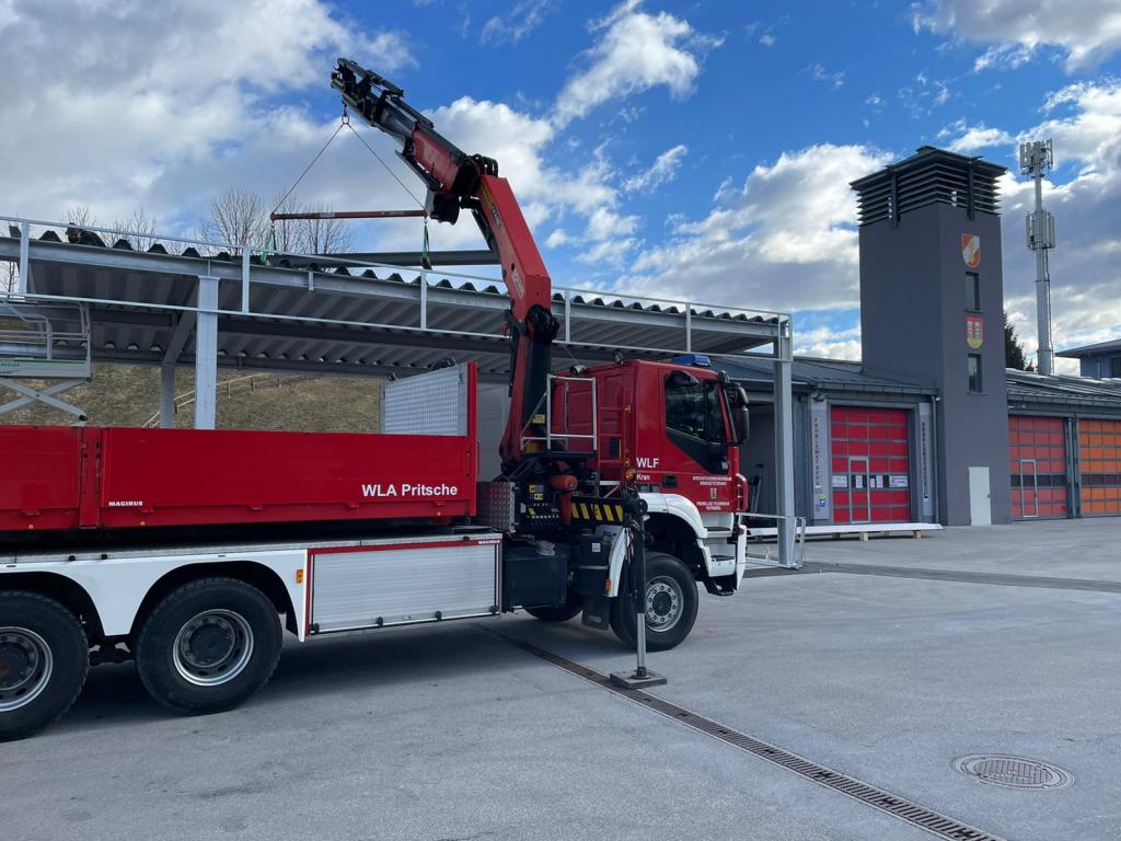 VOITSBERG, am 25.02.2022 Beim Feuerwehrhaus der Feuerwehr Voitsberg wurden in der letzten Februarwoche 2022 wieder zwei Zukunftsprojekte in Angriff genommen. Es wurde ein Zubau für die Wechselcontainer aufgestellt und weiter erfolgte die Antennenmontage für bessere Kommunikation