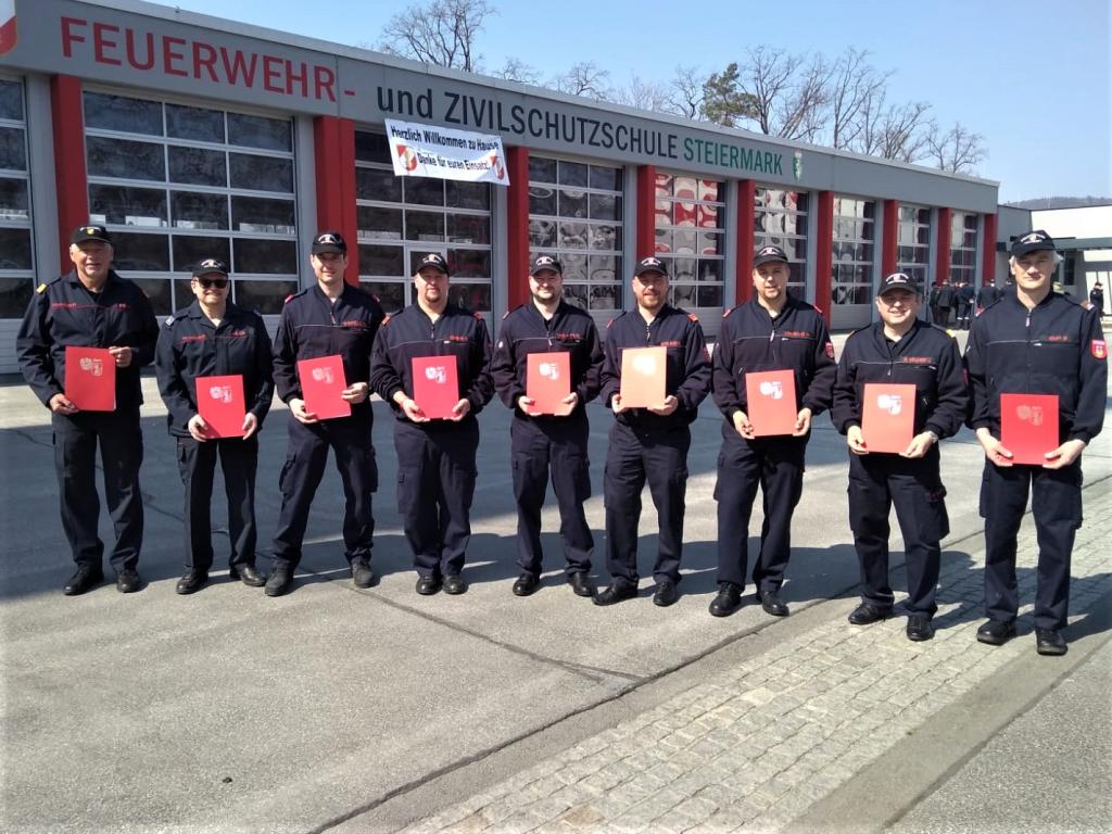 Neun Kameraden der FF Voitsberg, welche im Vorjahr mit weiteren Kameraden des Bereichsfeuerwehrverbandes Voitsberg, des LFV Steiermark und des LFV Niederösterreich in Nordmazedonien im Waldbrand-Einsatz standen, wurden am Samstag, 26. März 2022 an der Feuerwehr-und Zivilschutzschule Steiermark in Lebring von LBD Reinhard Leichtfried, Landesrat Johann Seitinger und der Abgeordneten zum Landtag Mag.a Bernadette Kerschler mit dem Katastrophen-Verdienstzeichen des österreichischen Bundesfeuerwehrverbandes (ÖBFV) ausgezeichnet.