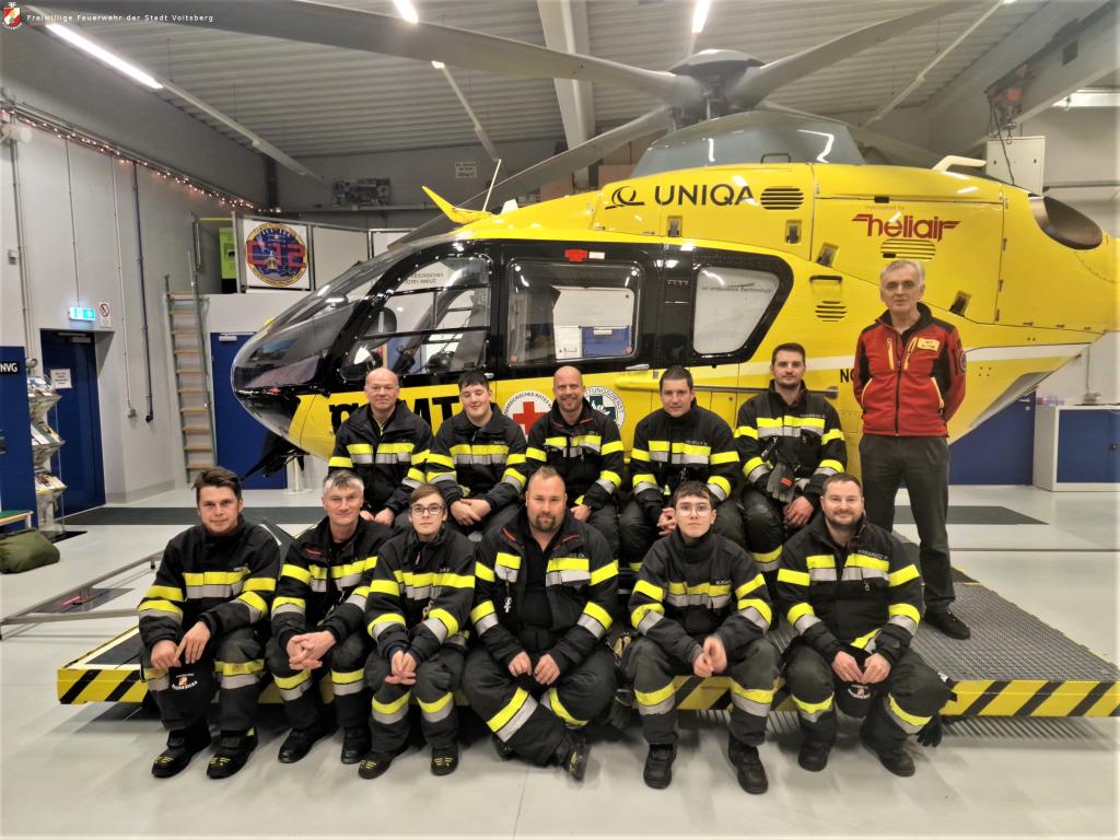 Kameraden der Stadtfeuerwehr Voitsberg hatten am Montag, 28. November 2022 die Möglichkeit, sich “hautnah” am Rettungshubschrauber C12 am Stützpunkt Graz-Thalerhof für eine eventuelle Zusammenarbeit im Einsatzfalle einschulen zu lassen und das Fluggerät zu besichtigen.