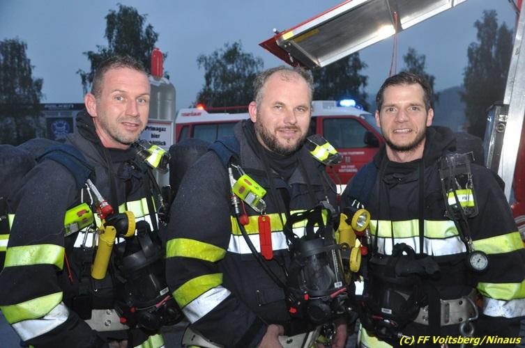 VOITSBERG, am 11.09.2017 „Brand“ in Fachmarkt mit 8 Vermissten Kürzlich fand beim OBI-Fachmarkt in Rosental eine Einsatzübung mit den Feuerwehren Rosental, Bärnbach und Voitsberg und der Suchhundestaffel des Roten Kreuzes statt. Übungsannahme war ein Brand, welcher in den Räumlichkeiten des Holzzuschnittes entstand. Die an die Landesleitzentrale Steiermark in Lebring angeschlossene Brandmeldeanlage löste den Alarm aus, worauf die Feuerwehren alarmiert wurden. Das anwesende Personal evakuierte anwesende Kunden aus dem Geschäft und begab sich sodann zum Sammelplatz. Zwei Arbeiter waren nach Erkundung der Einsatzleiter im Lager aufgrund der reichlichen Rauchgase vermisst. Atemschutztrupps konnten nach kurzer Zeit beide Arbeiter retten. Die Brandbekämpfung erfolgte mit Tanklöschfahrzeugen und nach Herstellung einer Löschleitung vom Gradnerbach mit einem C-Rohr. Verraucht waren auch Teile des Geschäftes, wobei 6 Kunden ebenfalls vermisst waren. Die mit alarmierte Suchhundestaffel des Roten Kreuzes konnte mit einigen Hunden die Suche aufnehmen und die Abgängigen lebend finden, erste Rettungsmaßnahmen einleiten und erfolgreich aus der Gefahrenzone bringen. Nach dem erfolgreichen Abschluss dieser Übung fand im Geschäft eine Nachbesprechung statt. Übungsleiter HBI Franz Sommer erläuterte die Vorgangsweise bei Eintreffen nach einer Alarmmeldung und machte auf einige Gefahrenpunkte aufmerksam. Die Einsatzleiter BI dF. Markus Birnstingl und HFM Daniel Eberhardt, bestens unterstützt von LM dF. Christian Buchegger mit dem Kommandofahrzeug der FF Voitsberg, konnten den Einsatz vorbildlich leiten. Der Geschäftsleiter des OBI – Baumarktes Rosental, Herr Markus Vötsch, bedankte sich abschließend für die Abhaltung dieser Übung, sprach den Mitgliedern der Feuerwehren allgemein seine Hochachtung für deren Einsatz aus und lud zu einer Jause und Getränken ein. Als Übungsbeobachter fanden sich ABI Alfred Jauk und EABI Josef Porta ein.