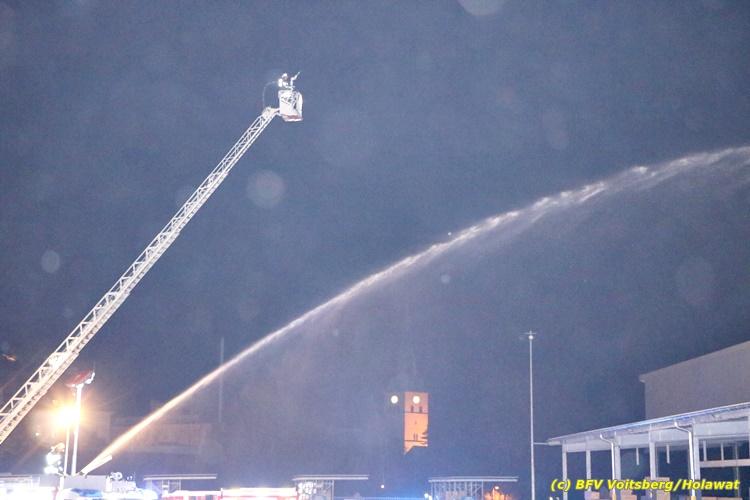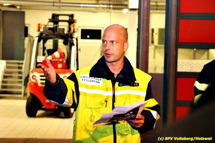 Der Feuerwehrabschnitt 2 des BFV Voitsberg veranstaltete am Montag, 15. Oktober 2018 bei der Firma Bauer in Voitsberg eine Abschnittsübung. Der Wehrkommandant der durchführenden Feuerwehr Voitsberg, BR Ing. Klaus Gehr konnte vor der Übung zahlreiche Übungsbeobachter bei der Übungserklärung begrüßen: Bürgermeister Ernst Meixner, Vizebürgermeister Walter Gaich, Stadtrat Franz Sachernegg, GR Werner Blumauer, GR Horst Kovacic, GR Johann Rauchegger, vom Roten Kreuz Voitsberg-Köflach BezirksrettungskdtStv. Florian Angerer und Elisabeth Jauk, das Team von Kanal3 und im speziellen die Vertreter der Firma Bauer mit ihrem Chef Otto Roiss. Gegen 18.30 Uhr wurde die Freiwillige Feuerwehr der Stadt Voitsberg über einen Brand bei der Firma Pumpen Bauer alarmiert, dass ein Teil einer Halle bereits in Vollbrand stehe und 5 Personen in den Hallen noch eingeschlossen seien bzw. die Halle nicht mehr verlassen konnten. Einsatzleiter OBI DI (FH) Bernd Unger alarmierte über Florian Voitsberg sofort die Feuerwehren des Abschnittes 2 sowie die Drehleiter der FF Köflach. Die Feuerwehr Voitsberg hat nach Eintreffen am Einsatzort sofort mit 2 Tanklöschfahrzeugen und HD-Rohr eine Erstbrandbekämpfung begonnen und ein Atemschutztrupp hat die Suche und das Retten von den vermissten Personen begonnen. Eine weitere Mannschaft hat eine Zubringleitung für den Wasserbezog vom zwei Kilometer entfernten Grafenteich zu errichten begonnen. Zwei Tragkraftspritzen haben die Wasserförderung über zwei B-Leitungen übernommen. Die nach der Reihe eintreffenden Wehren wurden vom Einsatzleiter Unger Bernd über das derzeitige Ausmaß informiert und sie erhielten jeweils ihre Einsatzbefehle. Vordergründig war natürlich die Suche und Rettung der weiteren vermissten Personen. Die Drehleiter Köflach mit dem Wasserwerfer hat den Brandherd aus 30 Meter Höhe bekämpft. Weiters wurden weitere 3 Wasserwerfer zur Brandbekämpfung eingesetzt. Die Wehren des Abschnittes 2 (Krems, Bärnbach, Afling Geistthal, Kainach, Stallhofen und Södingberg) wurden für weitere Löschangriffe der Halle wie auch zum Schützen der angebauten und angrenzenden Hallen beauftragt. Bei der Schlusskundgebung und nach der Meldung an Abschnittskommandanten ABI Alfred Jauk teilte BR Gehr, Kommandant der FF Voitsberg (durchführende Wehr der Abschnittsübung) mit, dass die Maxime der Übung die Bekämpfung eines Industriebrandes sowie die Wasserförderung in großen Mengen gewesen sei. Unter den Ehrengästen konnte ABI Alfred Jauk den Betriebsleiter der Firma Bauer Herrn Otto Roiss, Bereichskommandantstellvertreter BR Ing. Klaus Gehr, für alle Mitglieder des Bereichsfeuerwehrausschusses ABI d.V. Günter Höller, EBR Robert Klampfl, EABI Rudolf Gargitter, das Rote Kreuz unter Bezirksrettungskommandantstellvertreter Florian Angerer und den Brandschutzbeauftragten HBM Herbert Gratzer begrüßen. Zugleich wurde mitgeteilt, dass 147 Mann, 4 Wasserwerfer, die Drehleiter Köflach sowie 3 Atemschutztrupps und alle weiteren zur Verfügung stehenden Einsatzfahrzeuge des Abschnittes 2 eingesetzt waren. Nach dem Antreten wurde mit den zuständigen Gruppenkommandanten eine Nachbesprechung der Übung abgehalten, um etwaige Fehler oder Verbesserungen aufzeigen zu können. Anschließend wurde alle Übungsteilnehmer seitens der Firma Pumpen Bauer zur Verpflegung ins Rüsthaus Voitsberg eingeladen. Text: Artur Holawat, BFV Voitsberg Fotos: Artur Holawat/BFV Voitsberg, Walter Ninaus/FF Voitsberg, Franz Patz/FF Voitsberg