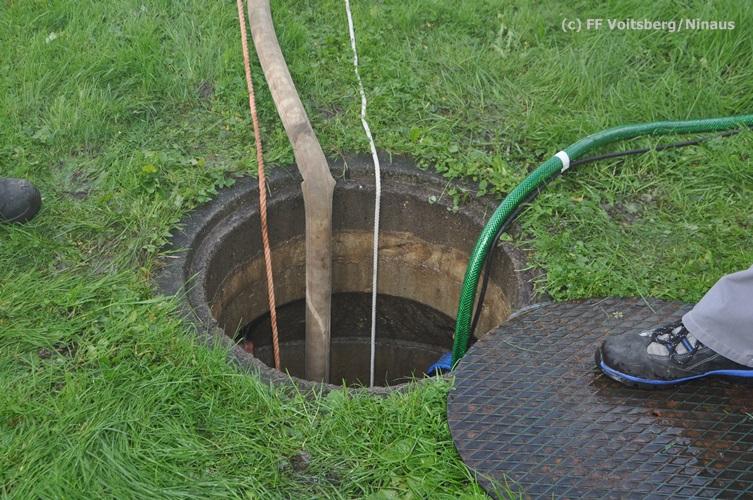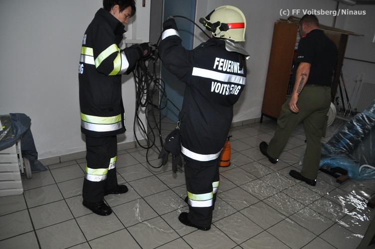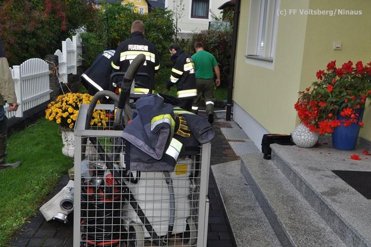 VOITSBERG, am 16.10.2015 Nach dem technischen Ausfall einer fest installierten Tauchpumpe drang Grundwasser in den Keller eines Wohnhauses ein und überschwemmte diesen mit ca. 15 cm. Abpumpen des Wassers mit Tauchpumpen und Trockenlegung mit Nasssauger.