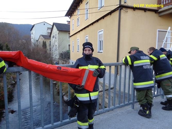 VOITSBERG, am 10.12.2015 Über Anforderung der einsatzleitenden FF Köflach wurde die FF Voitsberg als Ölstützpunktfeuerwehr angefordert, nachdem im Gemeindegebiet von Köflach im Gradnerbach ein Ölfilm sichtbar war. Nach einer Einsatzbesprechung wurden seitens der Feuerwehren Köflach und Voitsberg im Stadtgebiet Ölsperren errichtet. Die Einsatzleitung oblag ABI Markus Murgg. Ebenfalls am Einsatzort war ein Sachverständiger des Landes Steiermark.