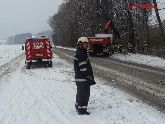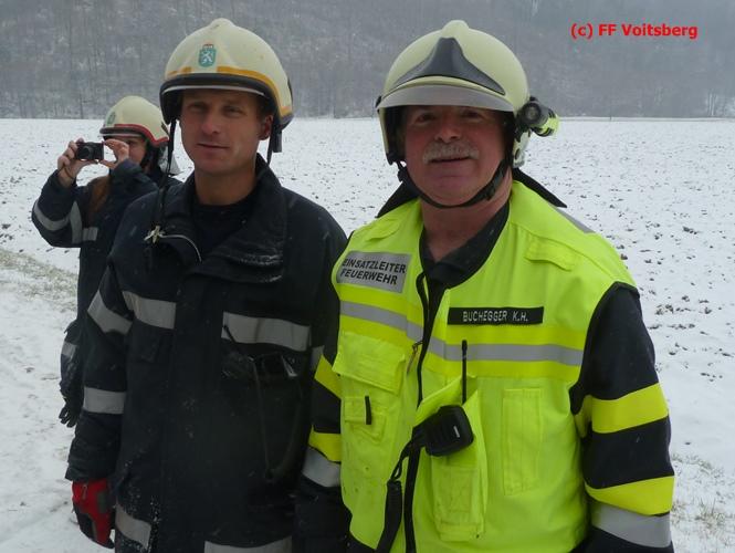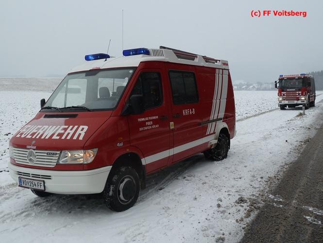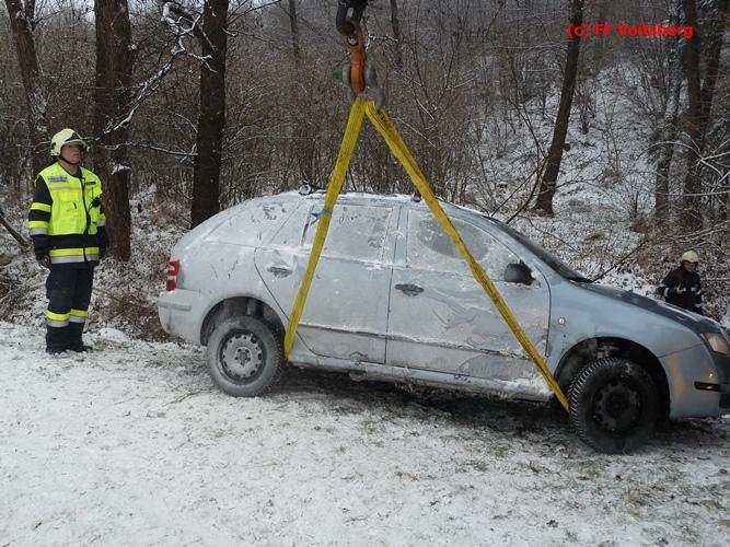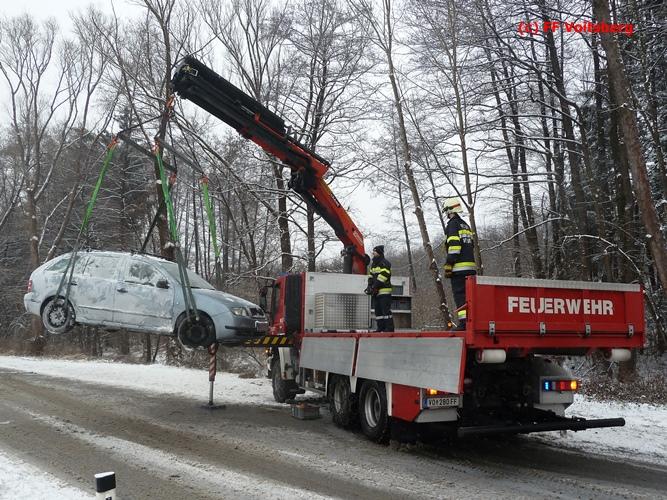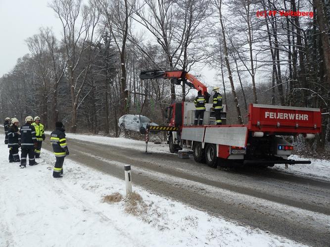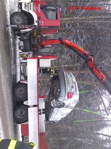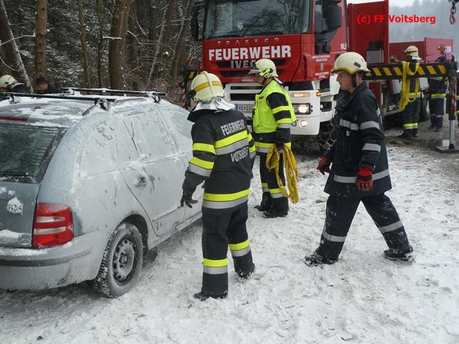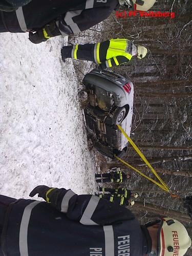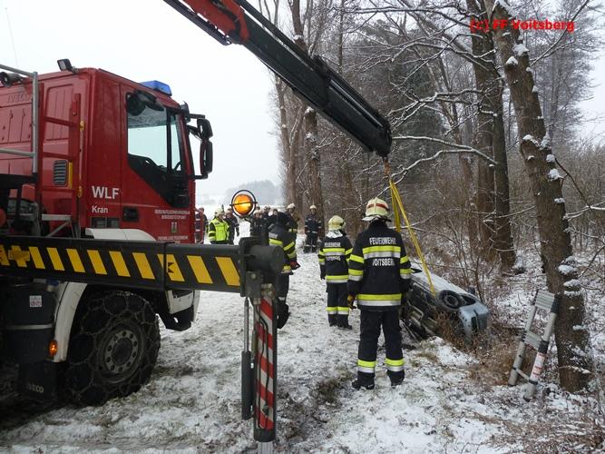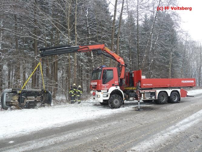 VOITSBERG, am 03.01.2016 Ein PKW kam aus ungeklärter Ursache ins Schleudern, kam von der Landesstrasse ab und landete seitlich liegend in einem Bach. Die alarmierte FF Piber führte Erstmaßnahmen durch und forderte über die LLZ Steiermark das WLF-Kran der FF Voitsberg zwecks Bergung an. Der Verkehr wurde während der Bergungsarbeiten von der FF Piber geregelt.