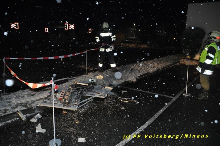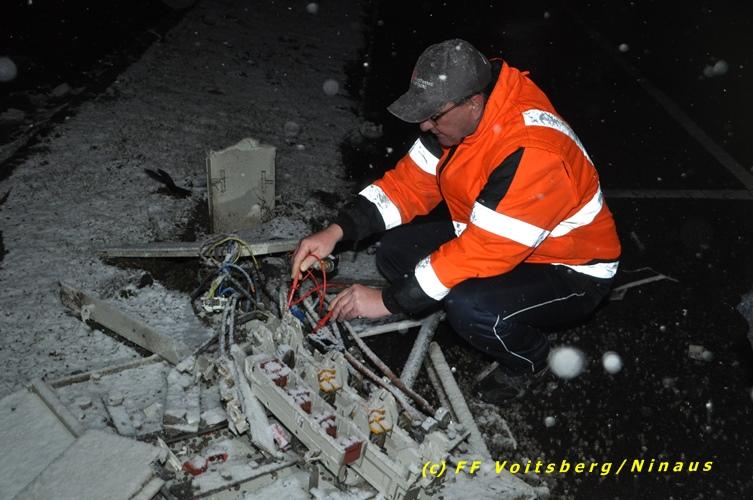 Vom zerfetzten Motorblock gelangten Betriebsmittel auf die Fahrbahn und drohten in die Kanalisation zu gelangen. Mit Bindemittel konnte dies verhindert werden. Die Bergung des Fahrzeuges erfolgte mit dem WLF-Kran. Der Inspektionsdienst der Stadtwerke Voitsberg prüfte die Leitung zum Verteilerkasten und setzte diesen außer Strom. Mittels Absperrbänder wurden die Überreste gesichert. Seitens der erhebenden Beamten der Polizei Voitsberg wurden auch die GKB-Bahnlinien verständigt, um den Gleiskörper vor Aufnahme des Bahnverkehrs zu kontrollieren. Herumliegende Wrackteile wurden eingesammelt und deponiert.