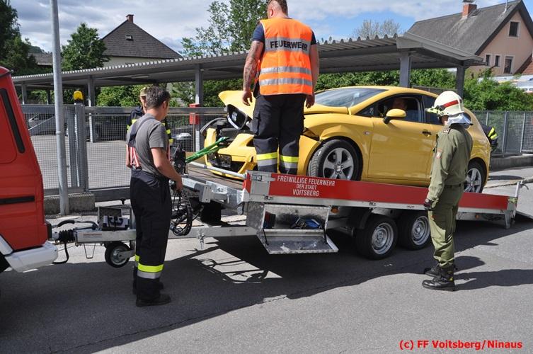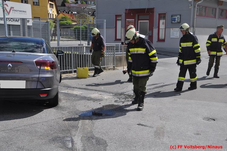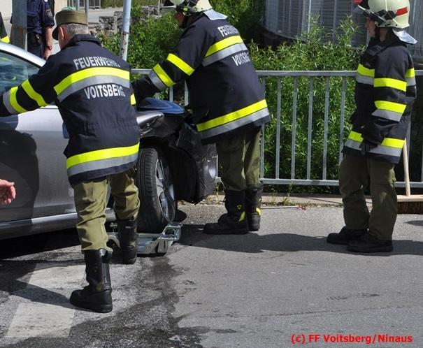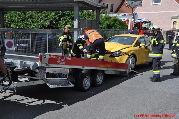 VOITSBERG, am 30.05.2016 Am Montagvormittag kam es auf der Kreuzung Zangtalerstrasse - Burggasse in Voitsberg zu einem Zusammenstoß zweier PKW. Die beschädigten Fahrzeuge wurden von der FF Voitsberg von der Unfallstelle entfernt und herumliegende Wrackteile beseitigt. Ausgeflossene Betriebsmittel wurden gebunden und fachgerecht entsorgt. Verletzt wurde niemand.