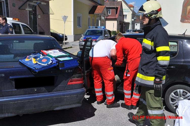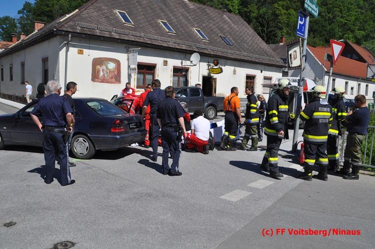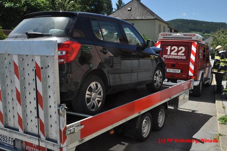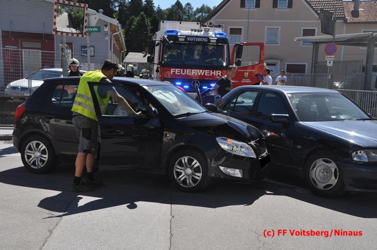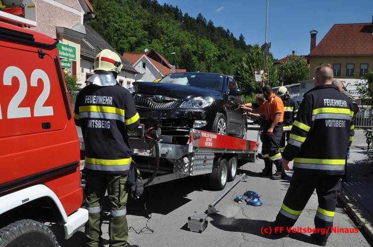 VOITSBERG, am 17.06.2016 Vermutlich nach Mißachtung eines Vorrangzeichens kam es zu einem Zusammenstoß zweier PKW. Während der sich allein im Fahrzeug befindliche Lenker eines Fahrzeuges selbst befreien konnte, mußten zwei Insassen des zweiten Unfallfahrzeuges im Fahrzeug vom Notarzt erstversorgt werden, ehe beide in Zusammenarbeit zwischen dem Roten Kreuz und der Feuerwehr gerettet und mit zwei RTW mit Verletzungen unbestimmten Grades ins Krankenhaus eingeliefert wurden. Die FF Voitsberg führte gemeinsam mit der Polizei die Verkehrsregelung durch. Ein Fahrzeug wurde vom einem Autofahrerklub und das zweite von der FF Voitsberg mittels Mehrzweckanhängers von der Unfallstelle entfernt.