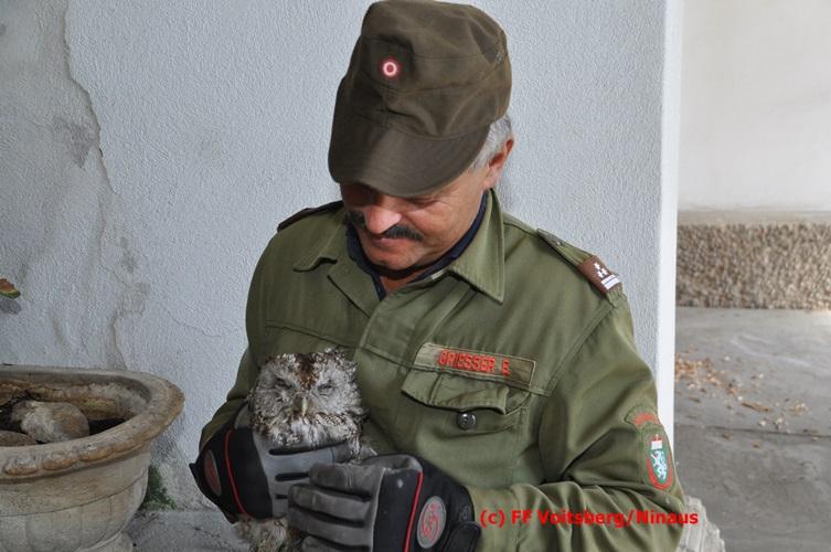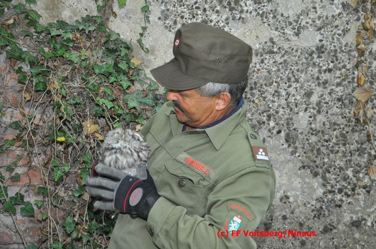 Nach zwei Tagen Aufenthalt in der Tierklinik wurde der genesene Kauz wieder an seinem angestammten Platz beim Schloss Greißenegg ausgesetzt.