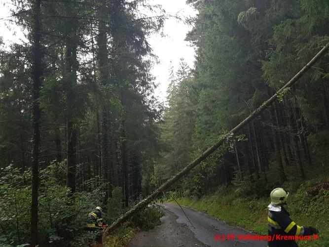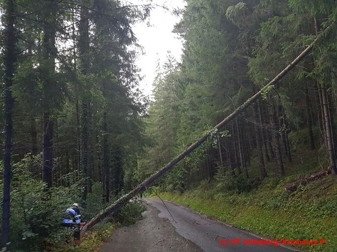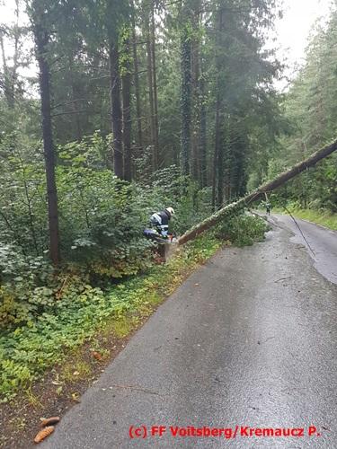VOITSBERG, am 31.07.2016 Nach einem Sturm kam ein Baum in Schieflage und machte das Passieren der Gemeindestrasse unmöglich. Der Baum wurde mittels Motorsäge umgeschnitten. sodass die Straße wieder befahrbar war.