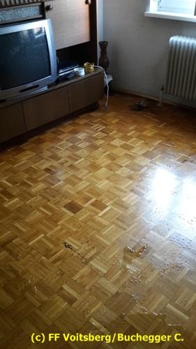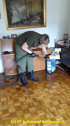 VOITSBERG, am 09.09.2016 Bei Heizungsarbeiten trat bei einem Ventil Wasser aus und überflutete einen Teil der Wohnung. Abpumpen des Wasser mit einem Nasssauger.