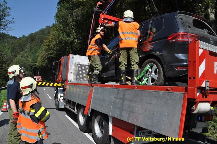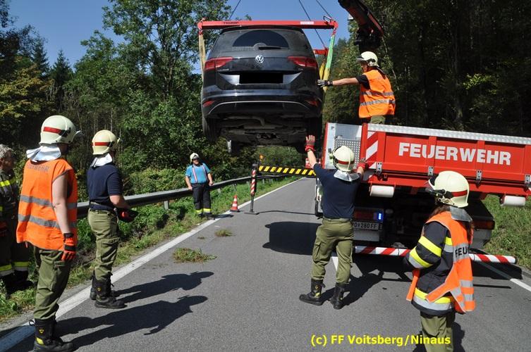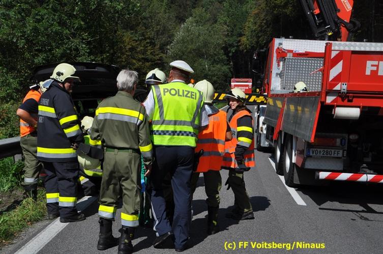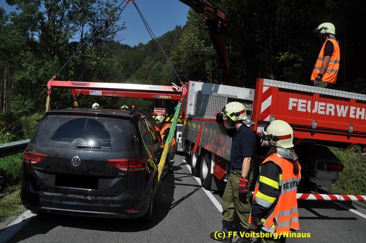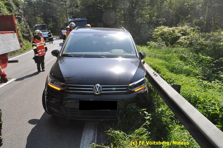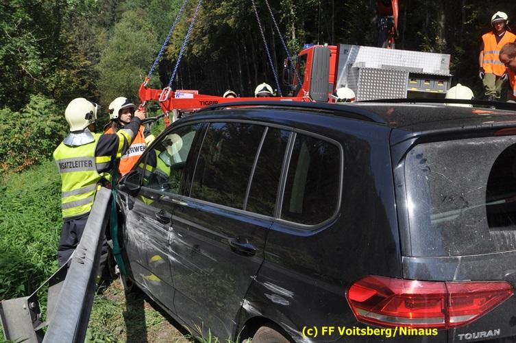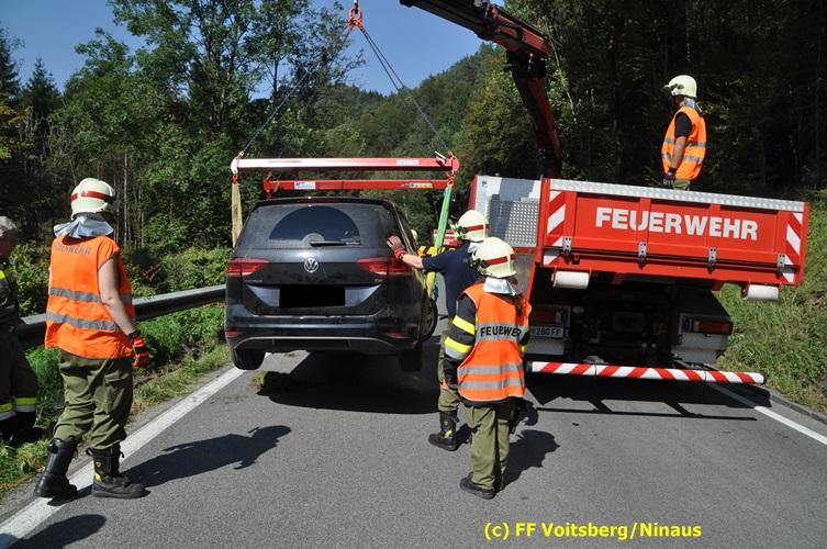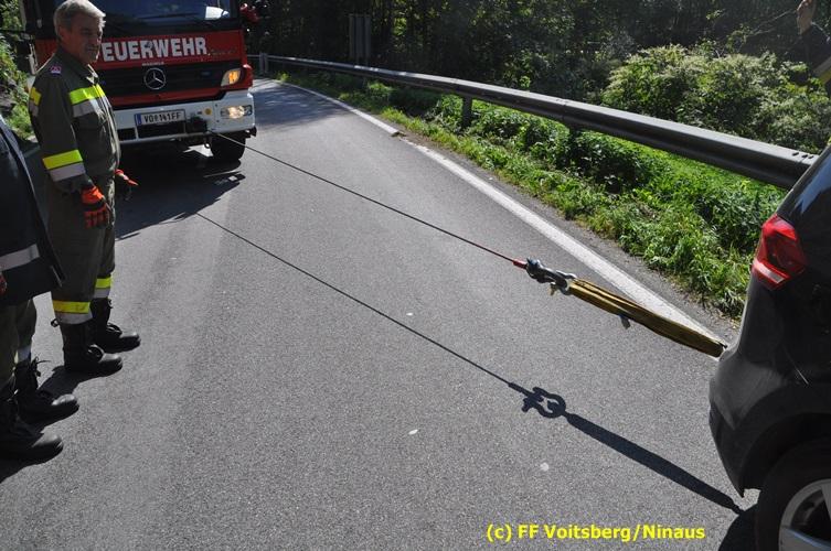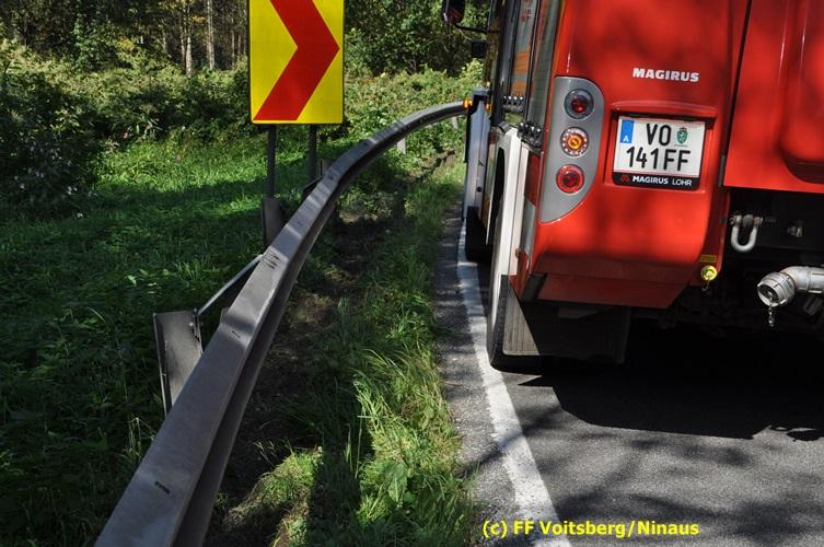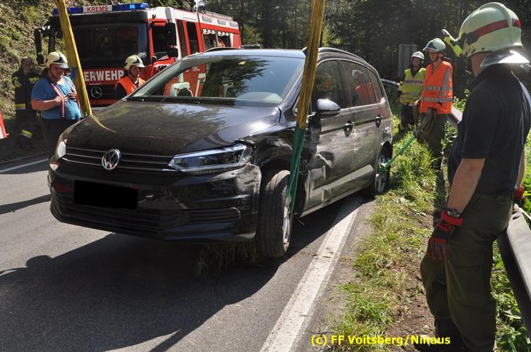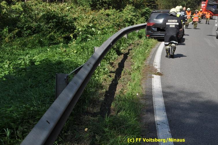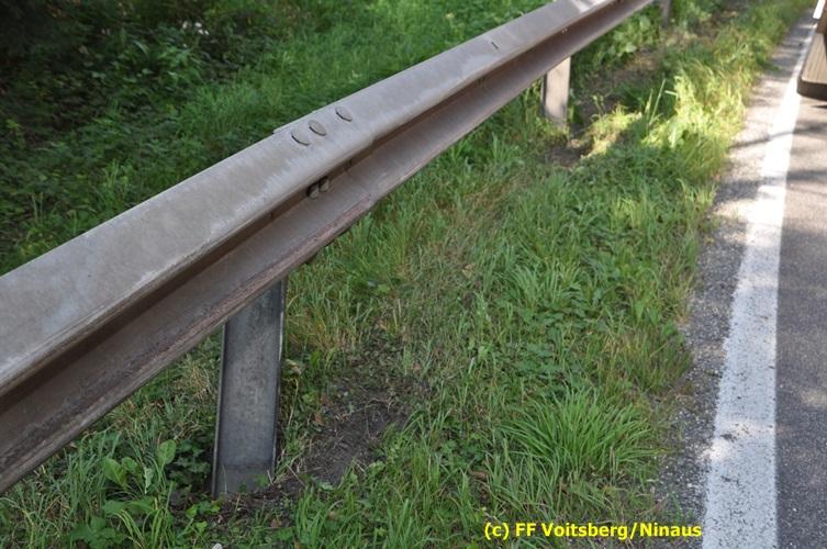 VOITSBERG, am 13.09.2016 Aus ungeklärter Ursache geriet in den Kremser Reihen in Fahrtrichtung Voitsberg ein PKW auf das linke Bankett, touchierte die Leitschiene und schlitterte ca. 50 m dieser entlang. Dabei wurde der PKW auf der linken Seite derart beschädigt, dass das Fahrzeug nur mit Hilfe des WLF-Kran geborgen werden konnte.
