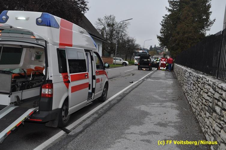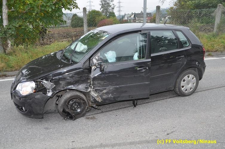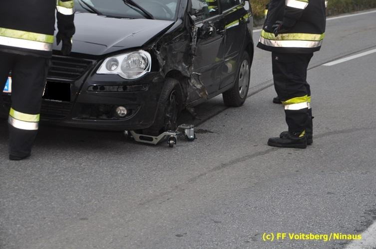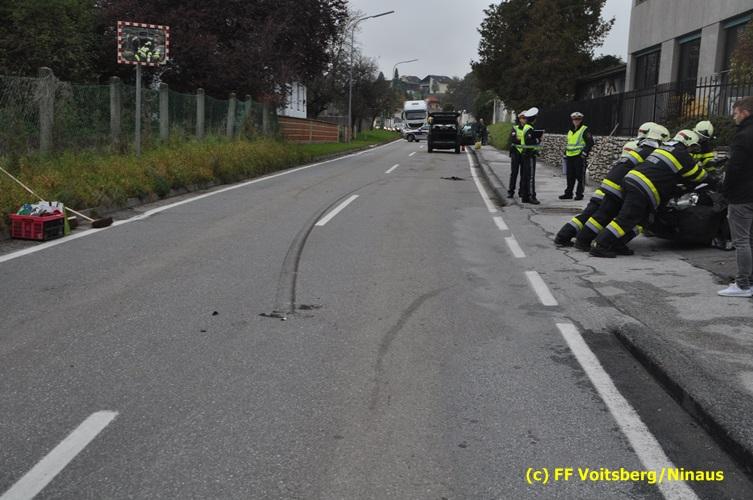 VOITSBERG, am 19.10.2016 Am Mittwoch Vormittag geriet ein PKW auf die linke Fahrbahnhälfte und stieß mit einem entgegenkommenden PKW zusammen. Beide Fahrzeuge wurden derart beschädigt, dass diese nicht ohne Hilfsmittel von der Fahrbahn gebracht werden konnten. Da seitens des Notruf-Anrufers die Meldung "Fahrzeugbrand" gemeldet wurde, alarmierte die LLZ in Lebring laut Alarmplan die FF Krems als Unterstützung zur FF Voitsberg hiezu, welche aber nicht in Tätigkeit treten musste, da es sich um keinen Brand handelte.