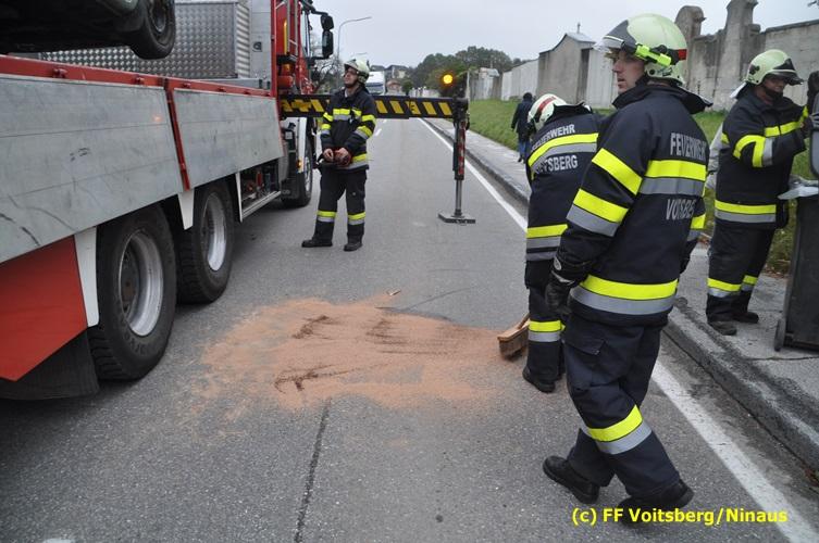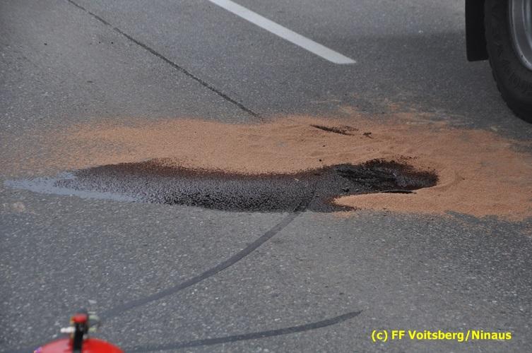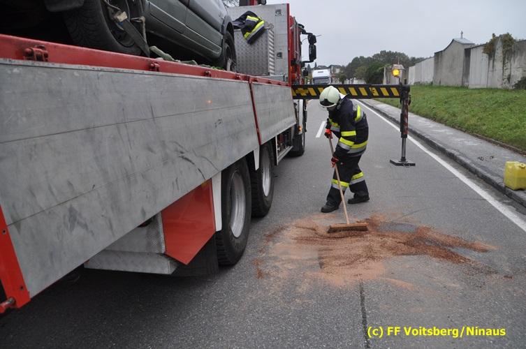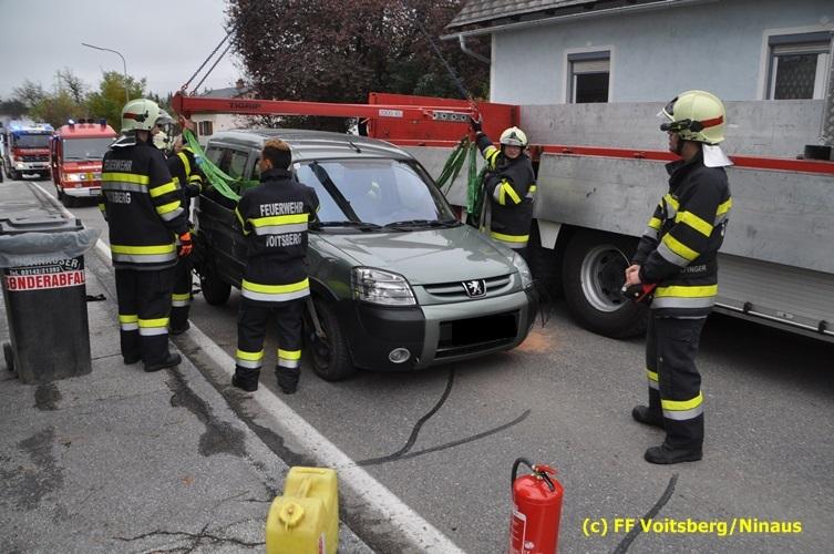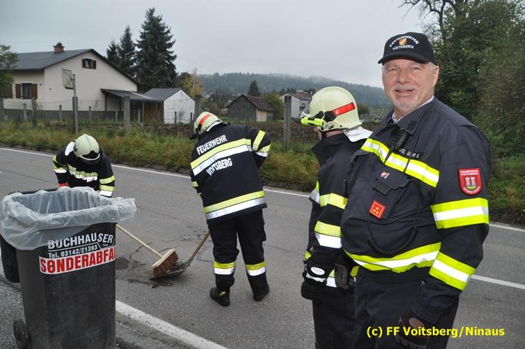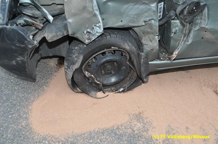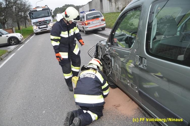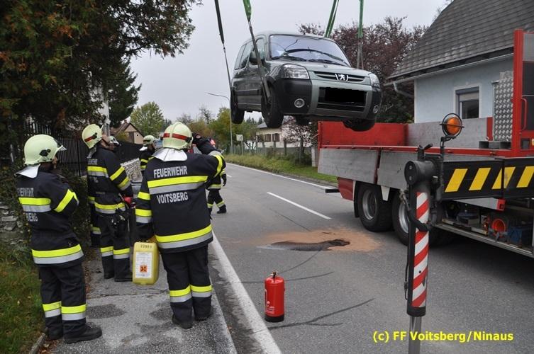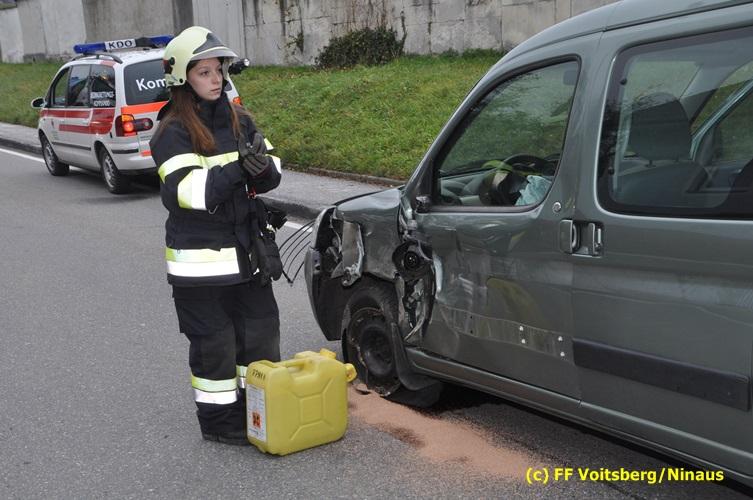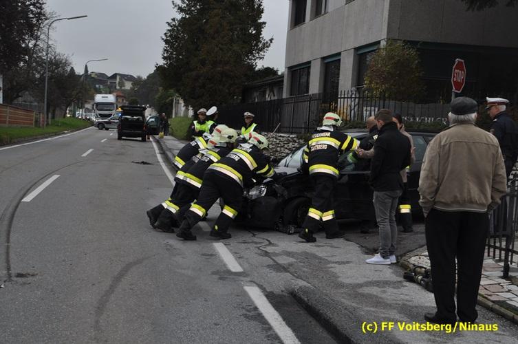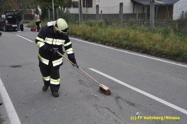 Ein Fahrzeug wurde von einem Autofahrerclub geborgen und das zweite mit dem WLF-Kran der FF Voitsberg von der Unfallstelle entfernt. Ausgelaufene Betriebsmittel wurden mittels Bindemittel gebunden und fachgerecht entsorgt. Während der Aufräumungsarbeiten wurde ein Brandschutz aufgebaut. Eine Lenkerin wurde unbestimmten Grades verletzt, vom Roten Kreuz versorgt und ins LKH Voitsberg eingeliefert. Die Polizei Voitsberg führte die Erhebungen durch.