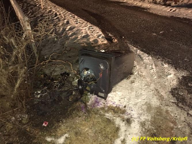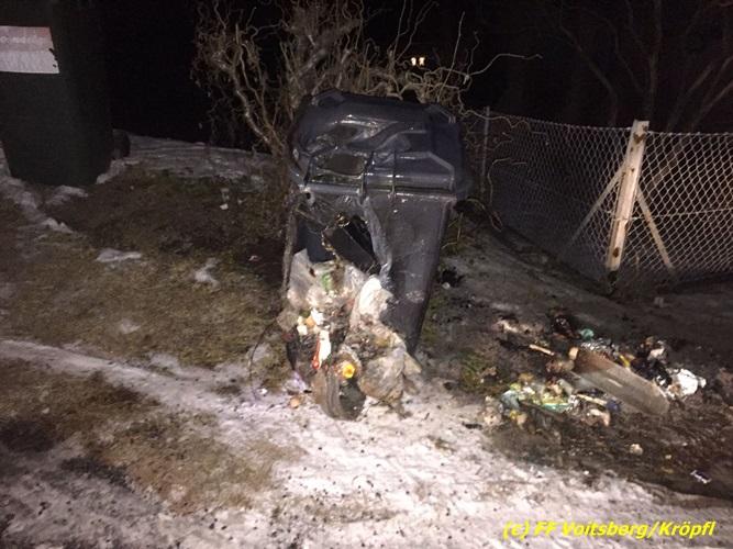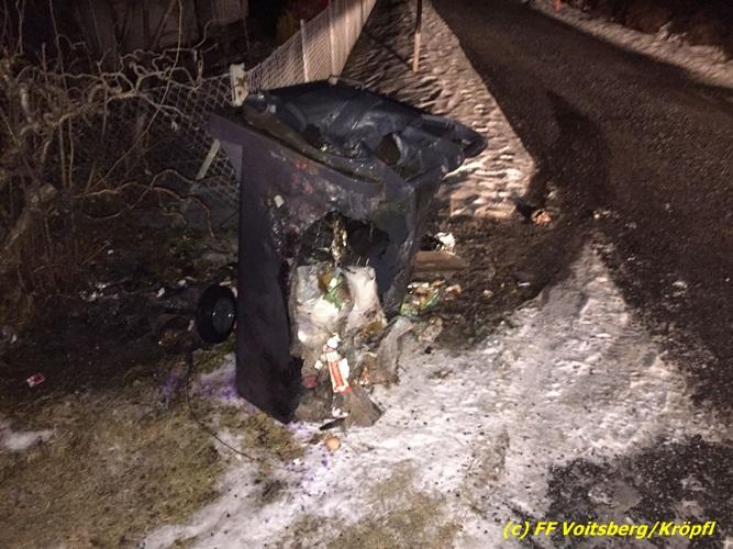 Brand eines Müllcontainers mit einem Hochdruckrohr gelöscht.